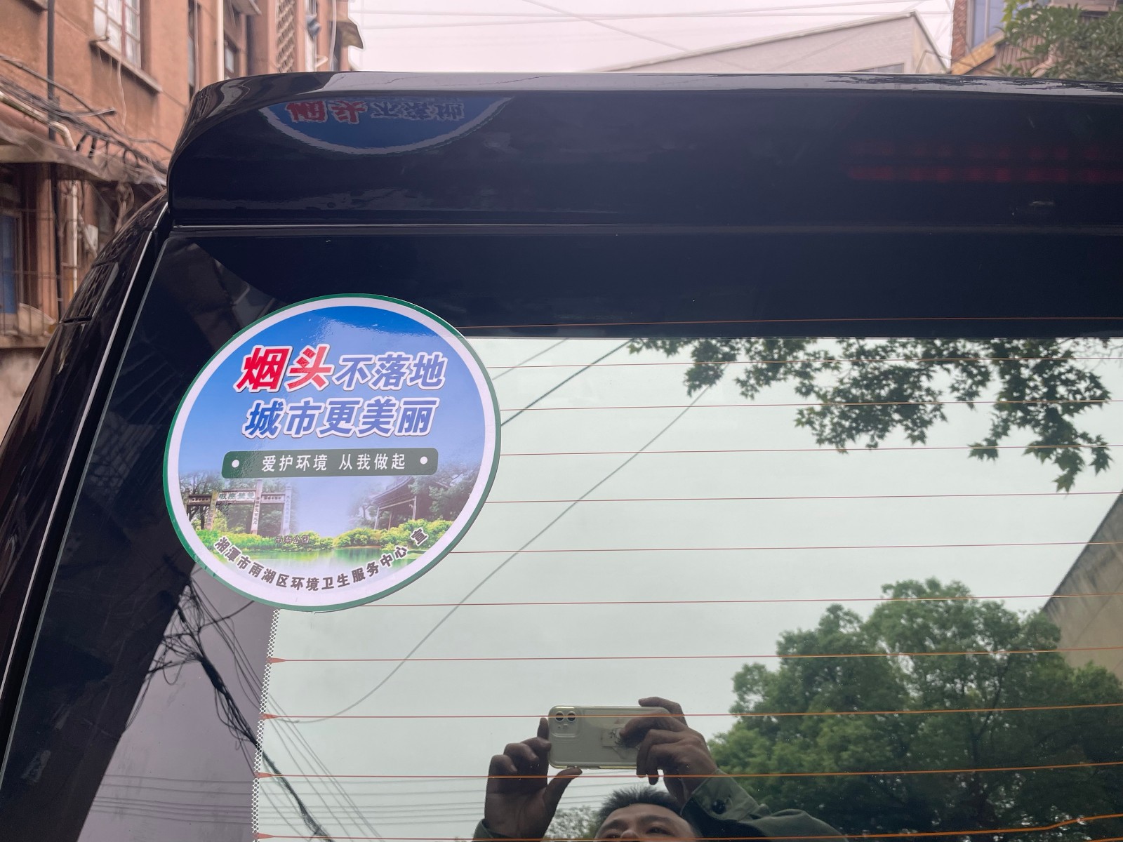 雨湖融媒109日讯(通讯员 黄学鹏)为进一步提升市民文明素质,巩固提升文明城市创建成果,在国庆中秋长假前,雨湖区环境卫生服务中心发动职工在自己私用车辆后窗贴上“烟头不落地,城市更美丽”等公益宣传车贴,还将动员家属也贴上相关车贴,成为拒绝车窗抛物的倡导者、践行者和监督者,共同维护城市环境。