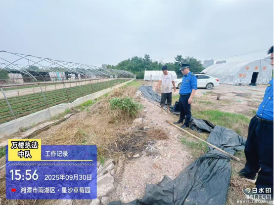 执法中队对重要时段和重点区域实行全天候、全覆盖、拉网式巡查,对发现的露天焚烧行为及时制止、劝导,坚决遏制露天焚烧现象。通过采取“定点值守+流动巡查”方式,形成了快速响应的闭环处置机制。9月30日,执法中队在万楼社区留本组发现一农户正在焚烧秸秆,火势较大。执法队员立即赶赴现场处置,对当事人郑建国依法处以罚款一百元,并责令其清理现场,消除环境影响。