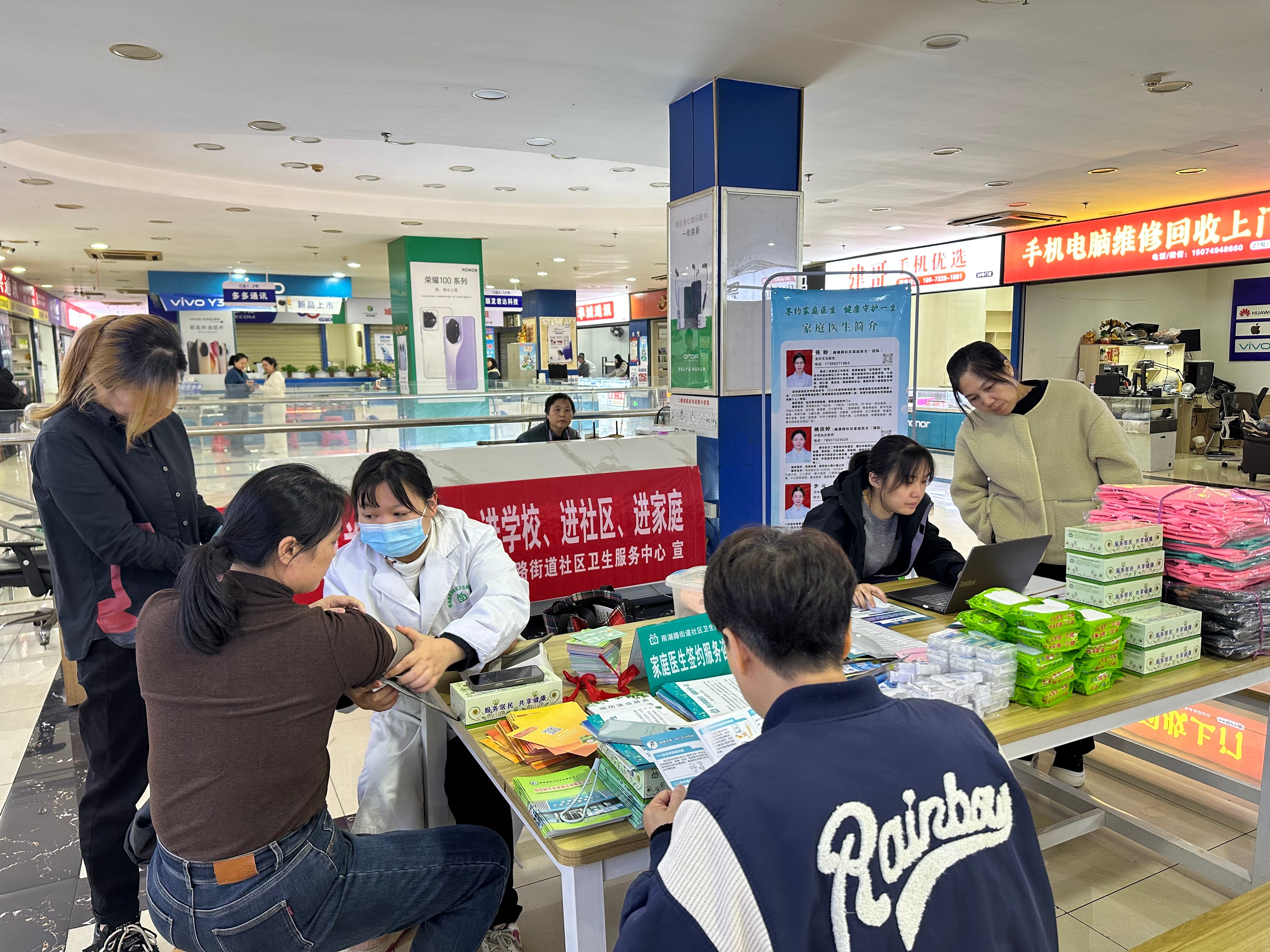 在义诊服务区,家庭医生耐心细致地为商户们提供免费的量血压、测血糖等基础检查。“您血压有点偏高,平时饮食要注意少盐,手机生意再忙也要记得站起来活动一下。”医生们结合商户们长期久坐、饮食不规律的工作特点,给出了个性化的健康指导和调理建议。一位经营手机配件多年的王先生感慨道:“一直觉得肩膀颈椎不舒服,也没专门去医院看。今天医生不仅帮我检查了,还教了我几个在店里就能做的放松动作,太实用了!”