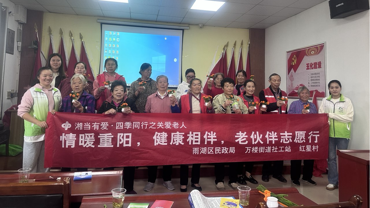 雨湖融媒10月28日讯(通讯员 肖燕 李姣辉)岁岁重阳,今又重阳。为传承尊老、敬老、爱老、助老的中华传统美德,切实回应社区老年群体的健康与精神需求,10月28日上午,由雨湖区民政局主办,湘潭市东西方社会工作服务中心、万楼街道社工站承办,万楼街道红星村协办的 “湘当有爱・四季同行之关爱老人——情暖重阳,健康相伴,老伙伴志愿行”主题活动,在红星村热闹举行。50余名60岁以上的老人齐聚一堂,在欢声笑语中度过了一个温暖而有意义的重阳佳节。