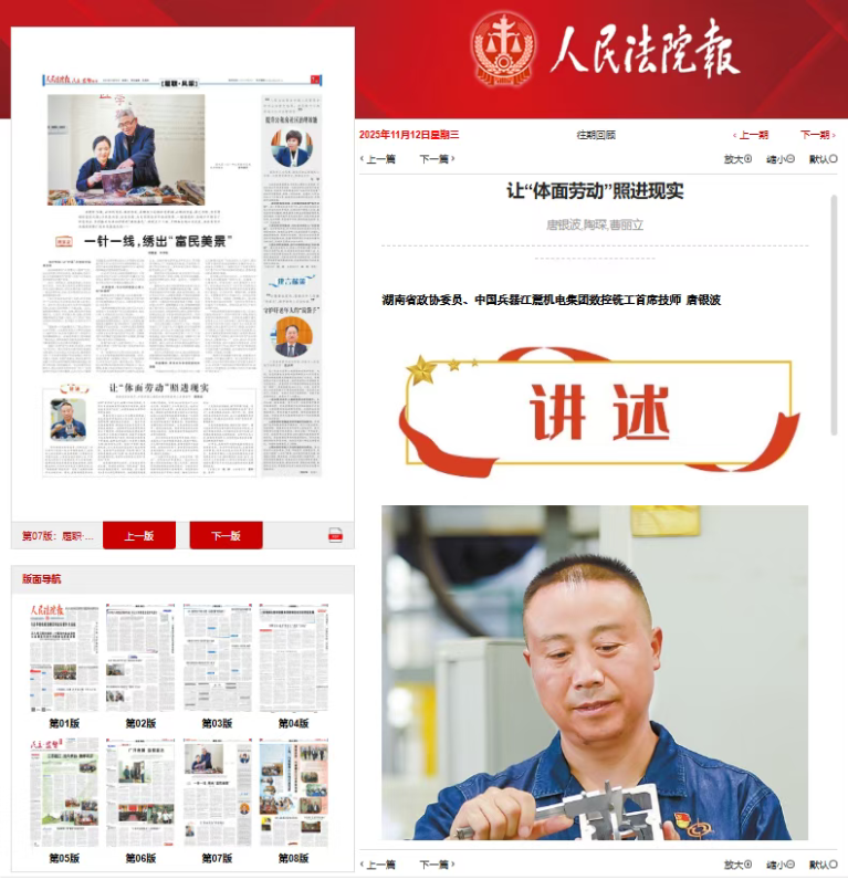 雨湖融媒11月14日讯(通讯员 曹丽立)作为湖南省政协委员,同时也是一名扎根军工制造一线30年的数控铣工,我深知工友们最揪心的急难愁盼:工资拖欠关乎柴米油盐,工伤认定漫长消耗心力,严苛的竞业限制又可能绑住技术人才的手脚。党和国家高度重视劳动者权益保护,政策暖风频吹,但如何让制度真正落地生根,让“体面劳动”照进现实?这成了我履职后格外关注的方向。因此,我特别留意司法在保障“辛苦钱”支付、破解工伤赔偿难题、平衡人才流动权益等关键环节的实践,因为这把司法的“刻度”,正量度着权益保障的精度与温度。