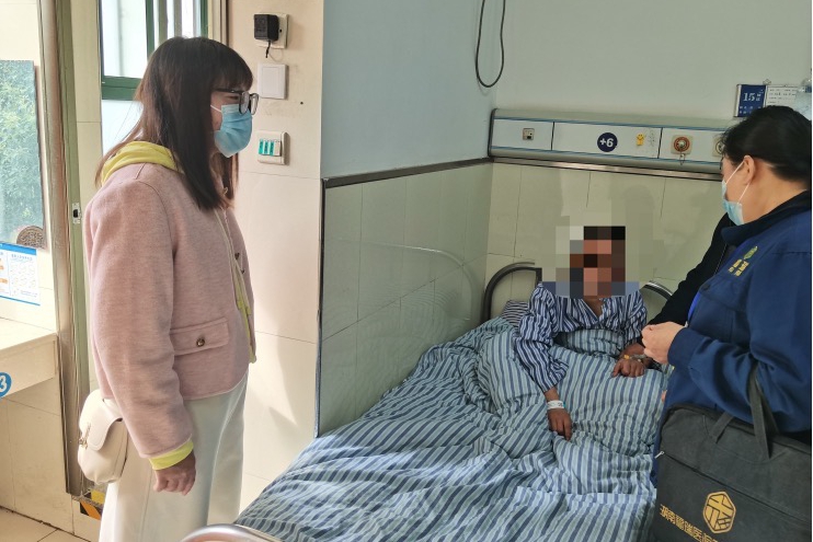 社区工作人员带着精心准备的礼物来到医院,与孩子的临时监护人、主治医生深入交流,收集孩子的兴趣爱好、心理状态等信息,以便掌握与残障儿童沟通的技巧和注意事项,以确保探望活动能够顺利进行。小天看到这群熟悉的“大朋友”时,原本有些黯淡的眼神瞬间亮了起来,脸上露出了纯真的笑容。