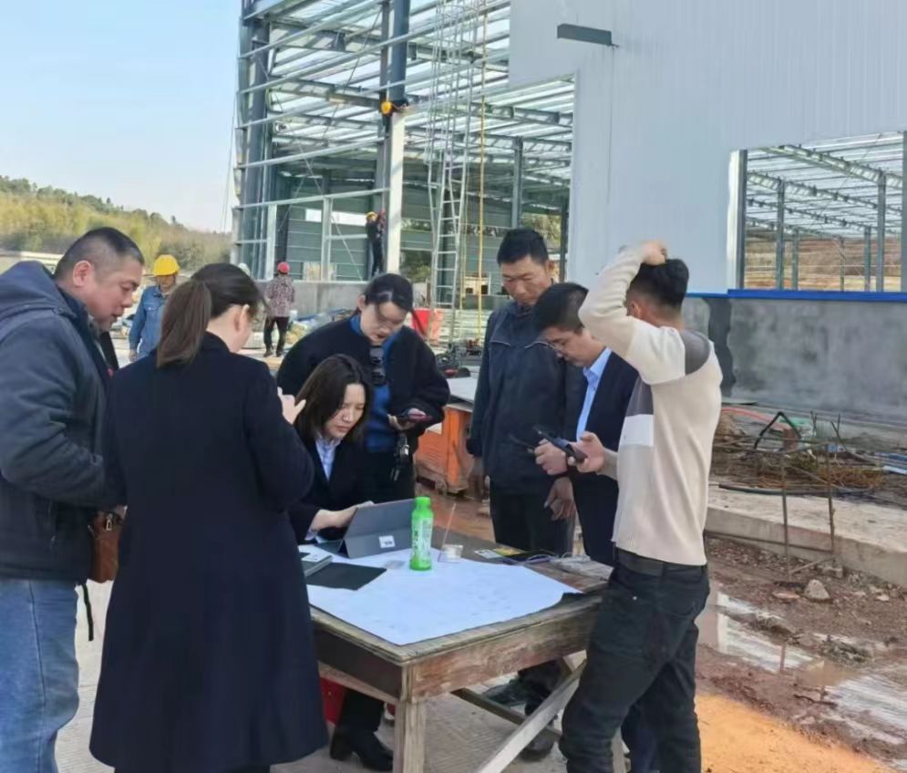 湘潭天易农商银行响塘支行工作人员到长安村物流仓库项目现场办公。