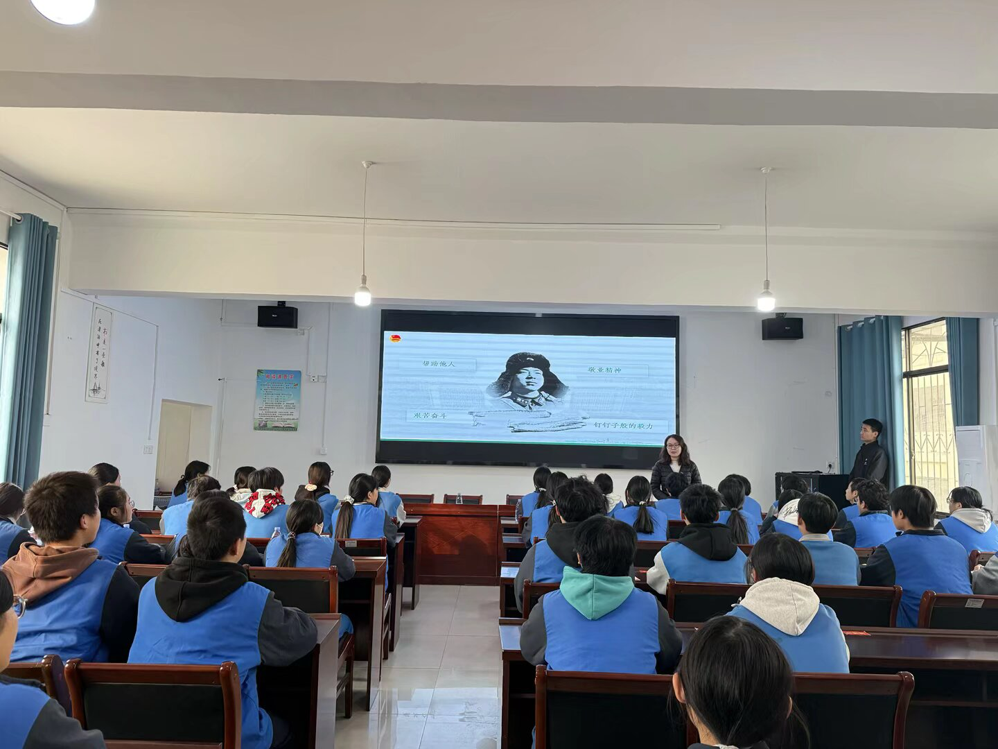 风车坪万楼学校谭讯老师带来精品团课《去追你心中的时代之光》。课堂以袁隆平、屠呦呦等时代楷模的奋斗故事为主线,引导团员青年和入团积极分子思考青春的意义与使命。学生们积极参与、认真记录,课堂气氛热烈,教学效果显著。