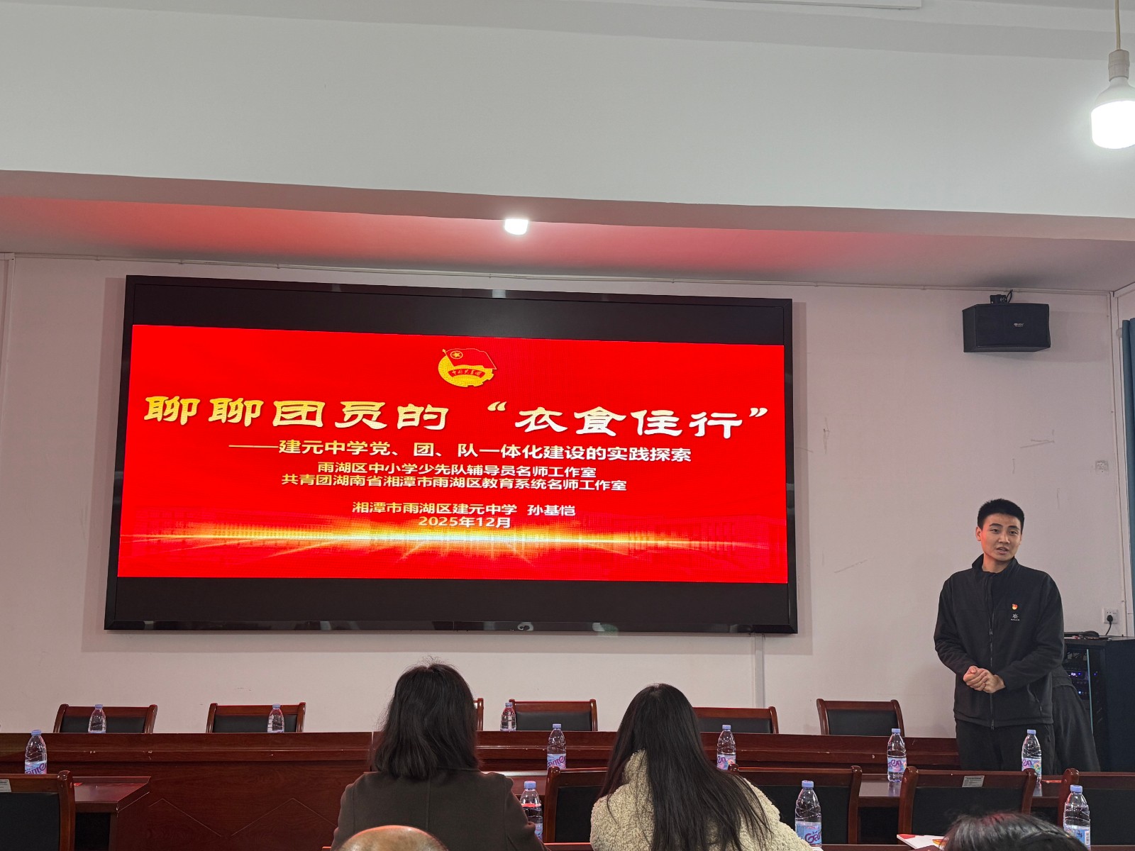 建元中学孙基恺老师作了题为“让团徽在校园熠熠生辉”的共青团工作经验分享。他从团建品牌打造、“党团队”阶梯式培养体系构建、“推优入团”规范实施等方面,系统介绍了学校思政育人的实践经验。分享内容针对性强、操作性高,为泉塘子中学团队工作提供了可借鉴的方法和思路。