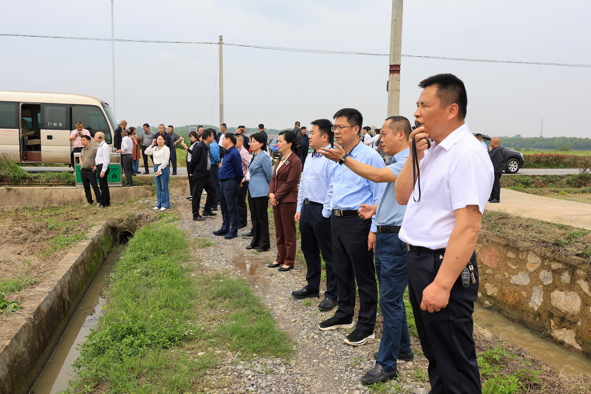 现场观摩棋盘村春耕现场。