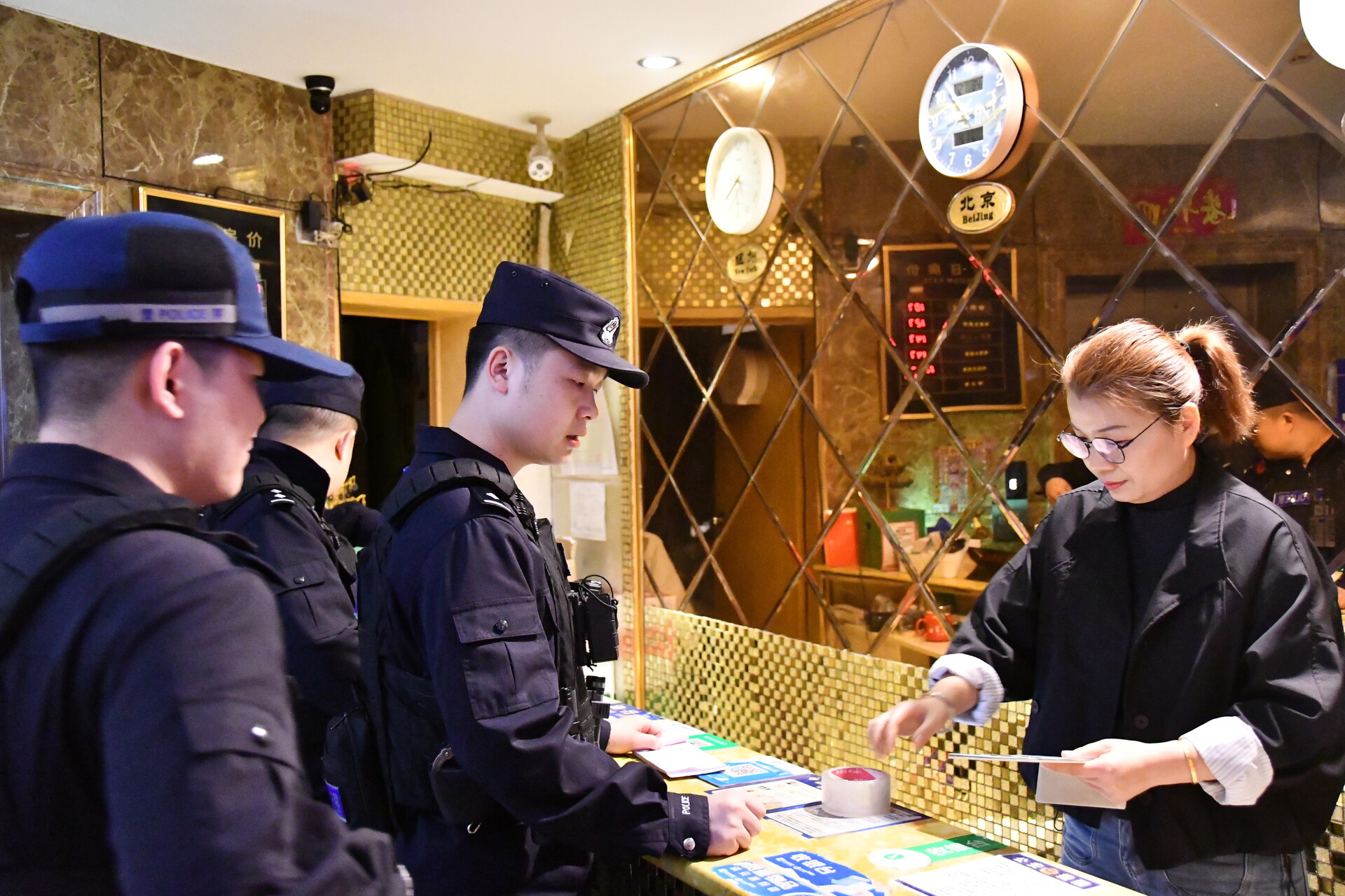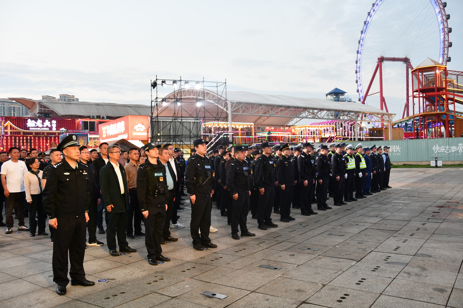 誓师大会结束后,随即开展车辆装备巡查,公安、交警、市场监管、城管等部门同步展开巡查。当晚全区开展第一次联合集中清查行动,聚焦商圈、夜市、烧烤摊、车站码头、背街小巷等案件高发区域,对旅馆、网吧、KTV、酒吧、出租房屋等重点场所进行“突击式”“地毯式”清查,在主要路口设置卡点严查酒驾醉驾等违法行为,同步开展消防安全、生产安全检查,督促整改隐患,以雷霆之势打响专项行动“第一枪”。