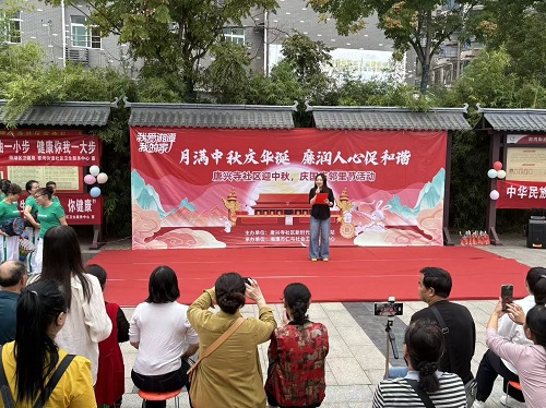 活动现场,节目表演精彩纷呈。口琴团队用美妙的口琴旋律为社区居民带来一场视听盛宴;舞者们轻盈的身姿在旋律中翩翩起舞,优美的舞姿赢得阵阵掌声;居民大合唱《歌唱祖国》,激昂澎湃,唱出了居民们对祖国深深的热爱和祝福。节目间隙,有奖问答环节将活动推向高潮。问题围绕中秋、国庆的文化知识以及廉洁文化知识展开,居民们踊跃举手抢答,在收获知识的同时,还获得了精美的小礼品,现场欢笑声不断。