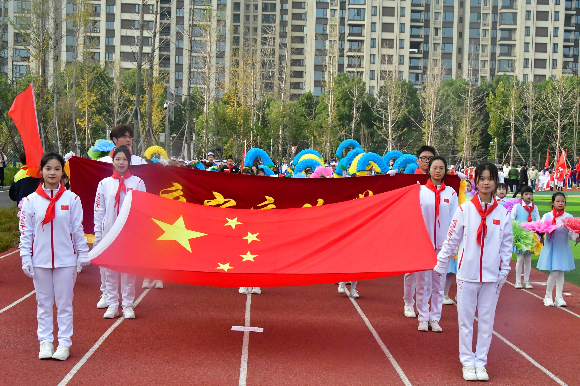 各校方阵步伐铿锵、意气风发,鲜花队、鼓号队、彩旗队与红旗队依次亮相,展现了雨湖学子蓬勃向上的精神风貌。现场,九华杉山学校的龙狮表演、以及九华江声中学的武术操等精彩节目依次上演,赢得阵阵掌声。