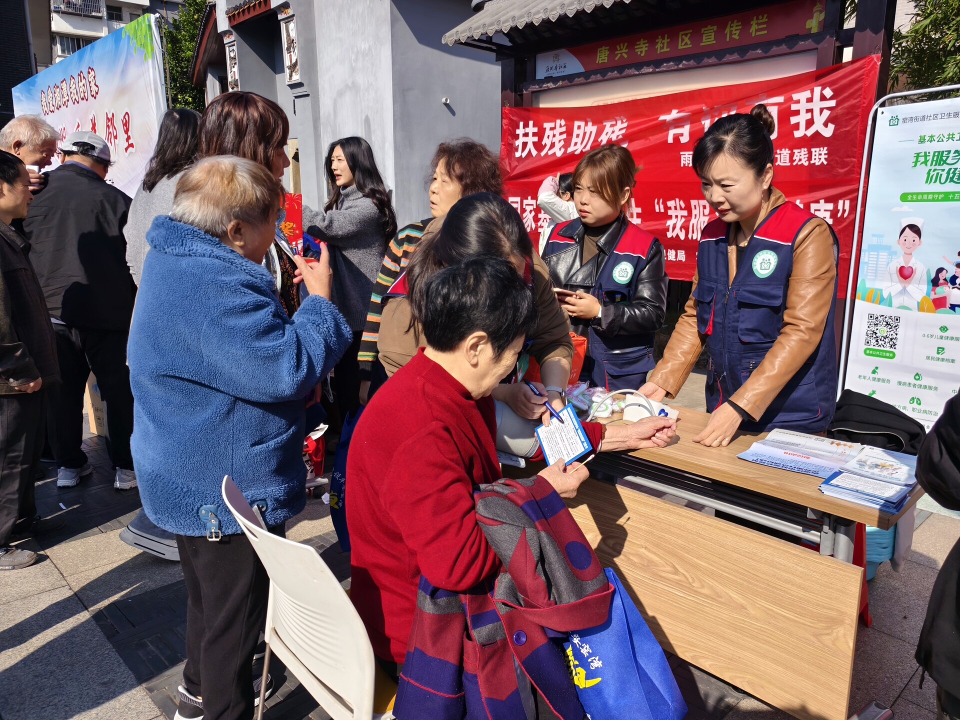 当天,广场另一侧的便民服务区同样热闹非凡。健康咨询岗上,窑湾街道社区卫生服务中心医护人员耐心为居民量血压、测血糖,细致解答秋冬养生、慢性病管理等问题;政策宣传台前,工作人员发放医保社保、消防安全、垃圾分类等宣传册,现场解读惠民政策;美食长廊更是香气四溢,绿丰农场的“惠民展台”前,大米、食用油、腊味、干果全是物美价廉的农场直供品......“平时邻里间各忙各的,难得有机会这么热闹地聚在一起,看节目、享服务,感觉心里暖暖的!”家住鑫源小区的王阿姨提着新鲜的五花肉,笑着说道。
