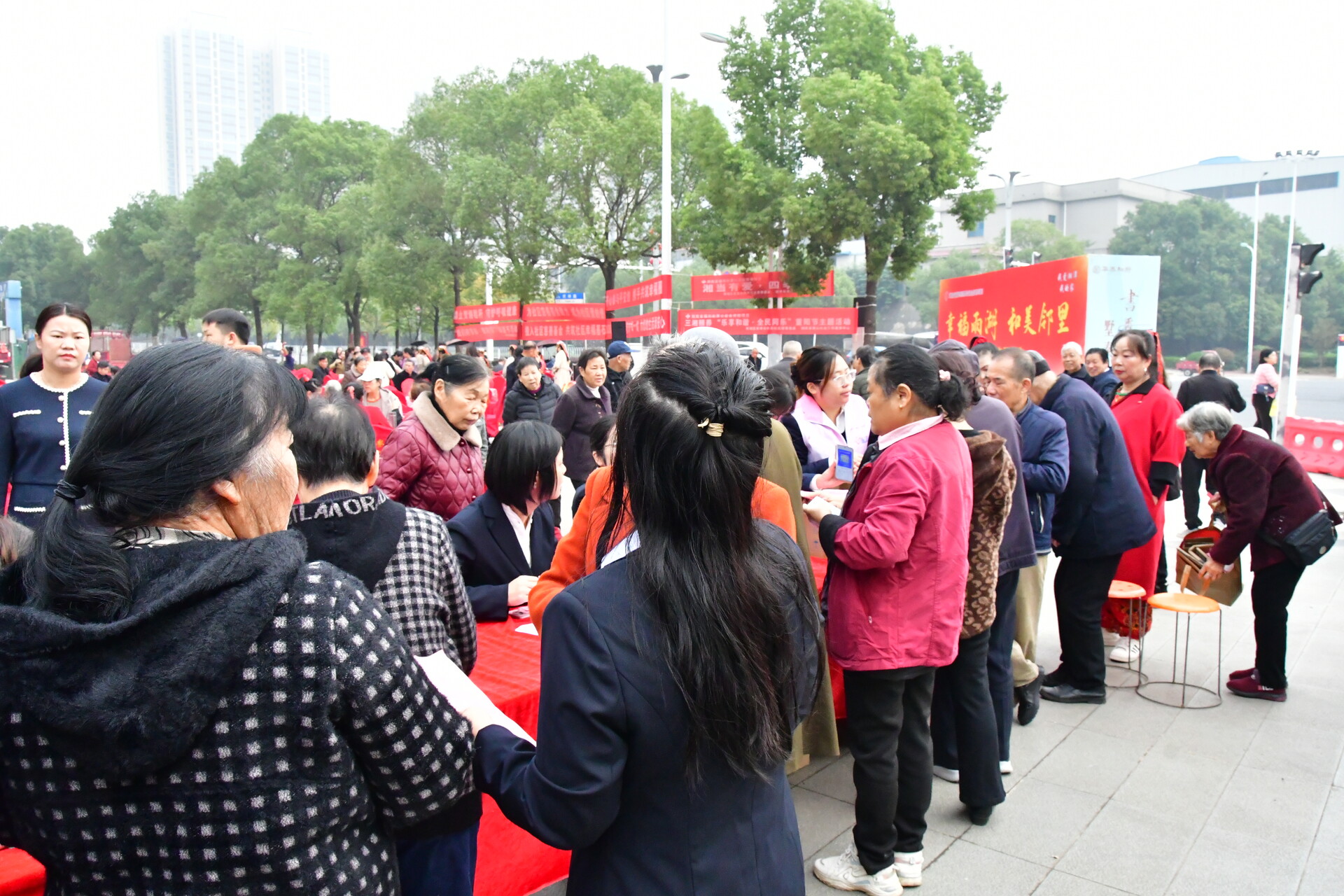 雨湖融媒10月27日讯 (实习记者 肖泽全)10月27日,和平街道民乐社区居委会、民乐社区新时代文明实践站主办的“我爱湘潭我的家”系列活动之九九重阳节百家宴,在永达九华府广场温情启幕。社区长者欢聚一堂,共度佳节。