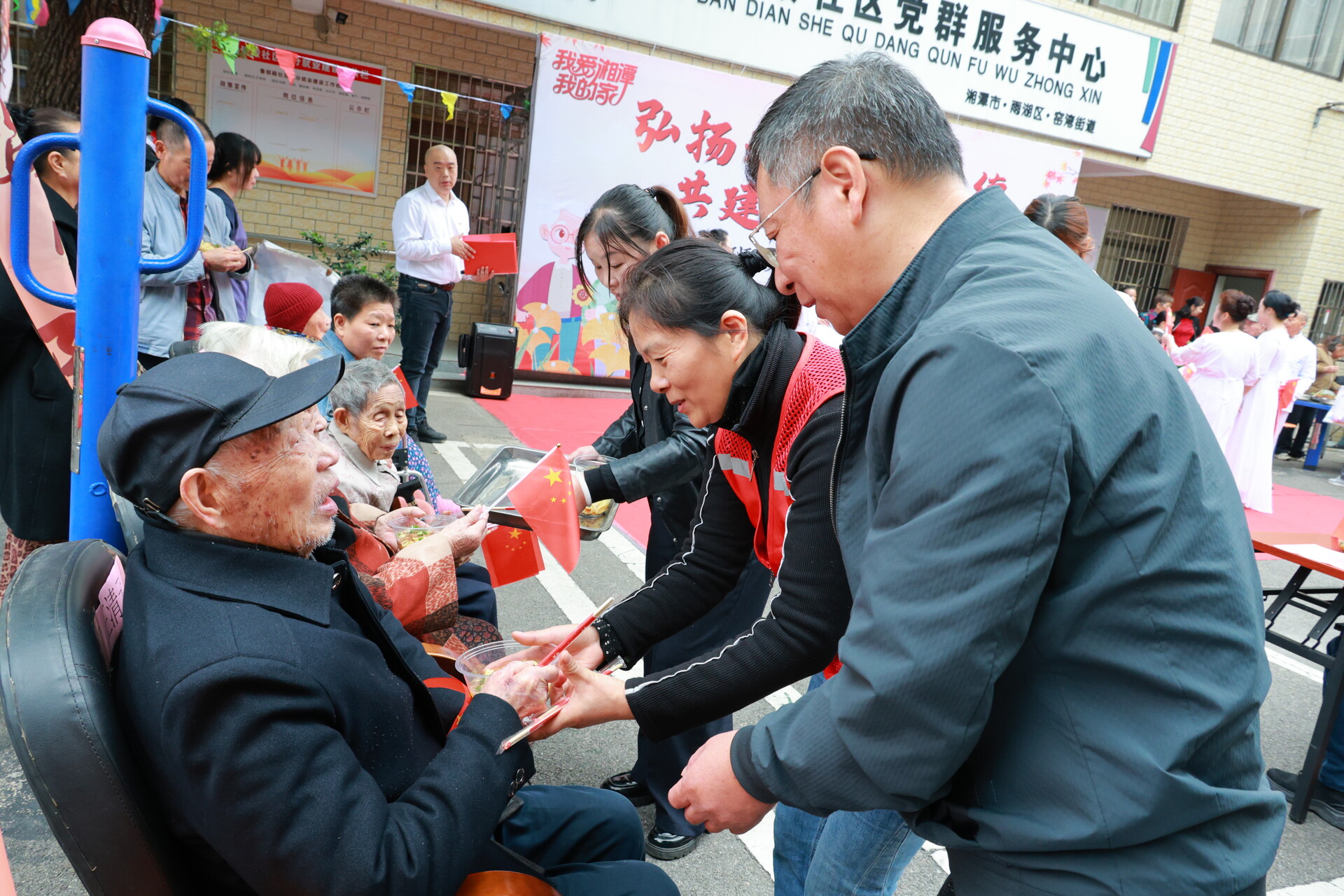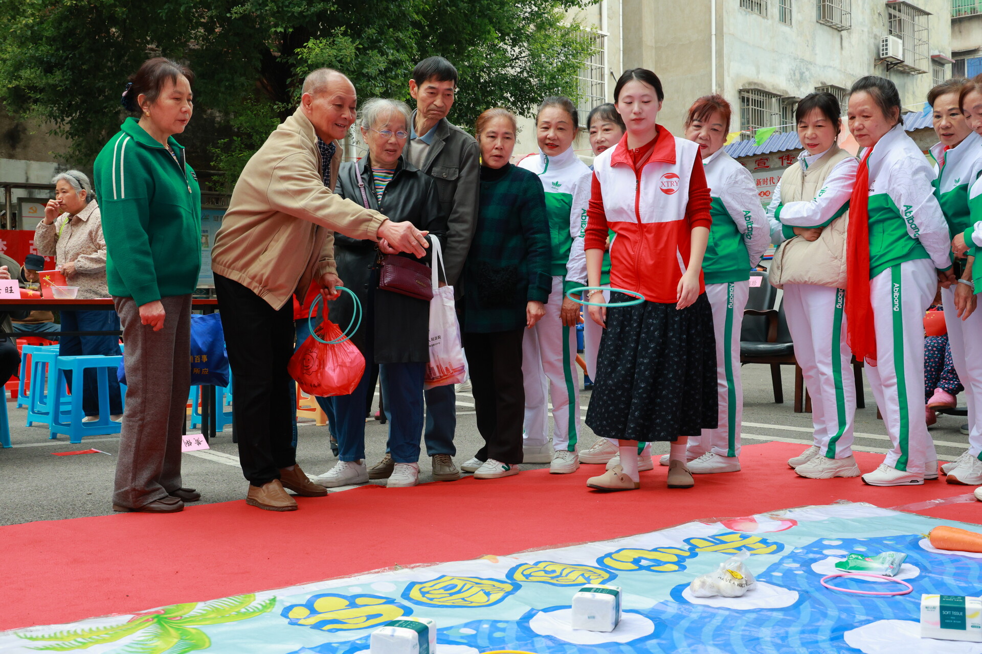 表演间隙,社区特别设置困难高龄老人慰问环节。社区联点单位湘潭市优化人居环境事务中心慰问了社区高龄及困难老人,为老人们送上了节日的祝福与关怀,让老人们切实感受到了来自社会大家庭的温暖;知识问答环节同样热闹,工作人员围绕重阳节习俗、敬老常识设计的题目,吸引居民踊跃参与,答对者收获精美礼品,在互动中传递传统文化知识。