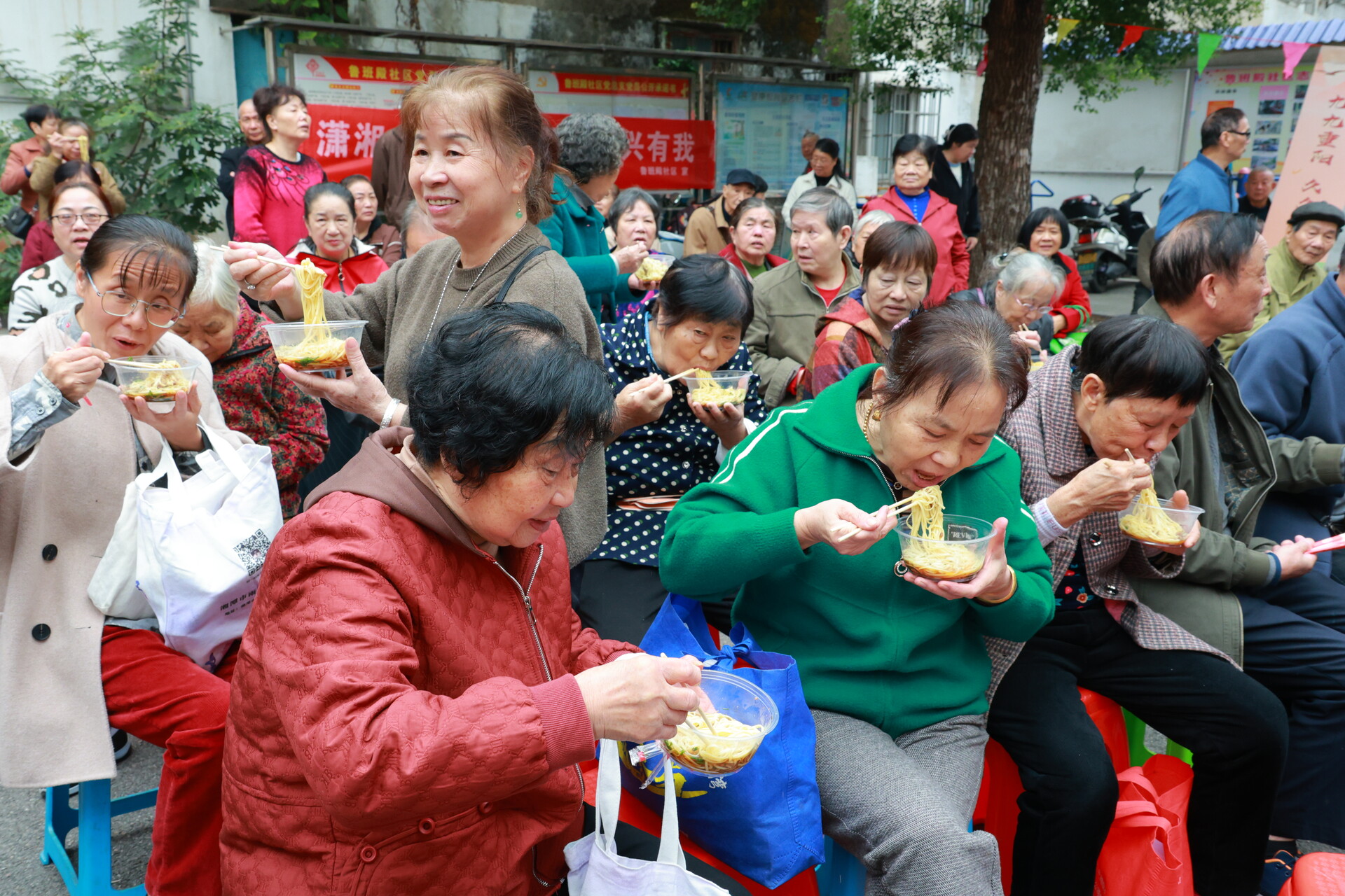此外,现场还准备了热腾腾的寿面与趣味游戏,居民们一边品尝寓意“福寿绵长”的寿面,一边参与套圈游戏,欢声笑语不断。此次丰富多彩的重阳节活动,不仅为居民带来了丰富的文化体验与互动乐趣,更以实际行动践行孝亲敬老传统美德,进一步拉近了社区与居民的距离。
