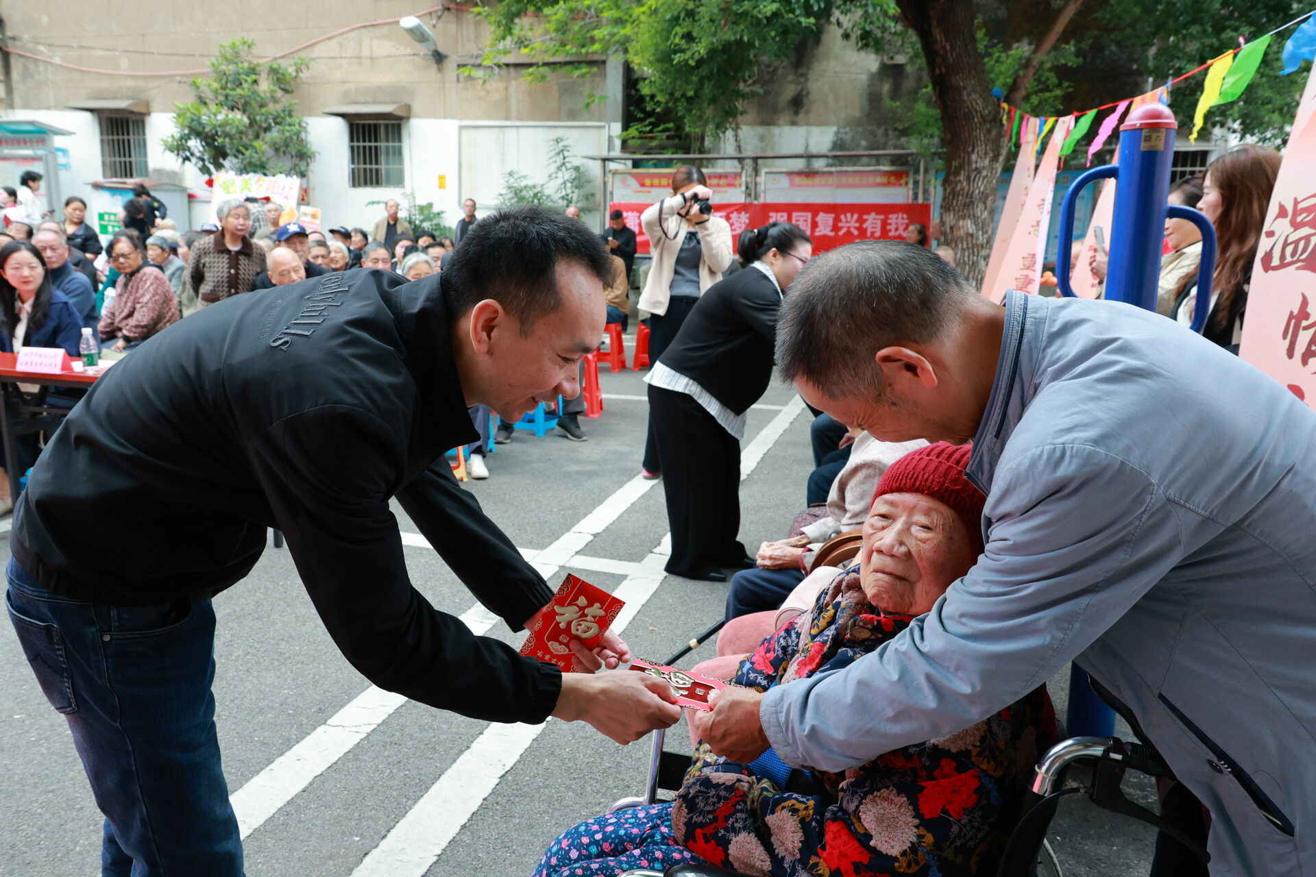 表演间隙,社区特别设置困难高龄老人慰问环节。社区联点单位湘潭市优化人居环境事务中心慰问了社区高龄及困难老人,为老人们送上了节日的祝福与关怀,让老人们切实感受到了来自社会大家庭的温暖;知识问答环节同样热闹,工作人员围绕重阳节习俗、敬老常识设计的题目,吸引居民踊跃参与,答对者收获精美礼品,在互动中传递传统文化知识。