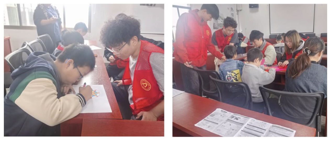 随后,绘画与手工折纸环节成为孩子们展示创造力的舞台。仁与社工和志愿者们为孩子们分发彩笔、画纸和折纸材料,鼓励大家用画笔描绘心中的“快乐世界”,用巧手折出形态各异的纸飞机、千纸鹤等。令人动容的是,一名残疾儿童在志愿者的耐心协助下,成功完成了一幅色彩鲜艳的画作,他举着作品露出灿烂的笑容:“我也能画出好看的画!”周围的小伙伴纷纷为他鼓掌,现场洋溢着互助友爱的温馨氛围。