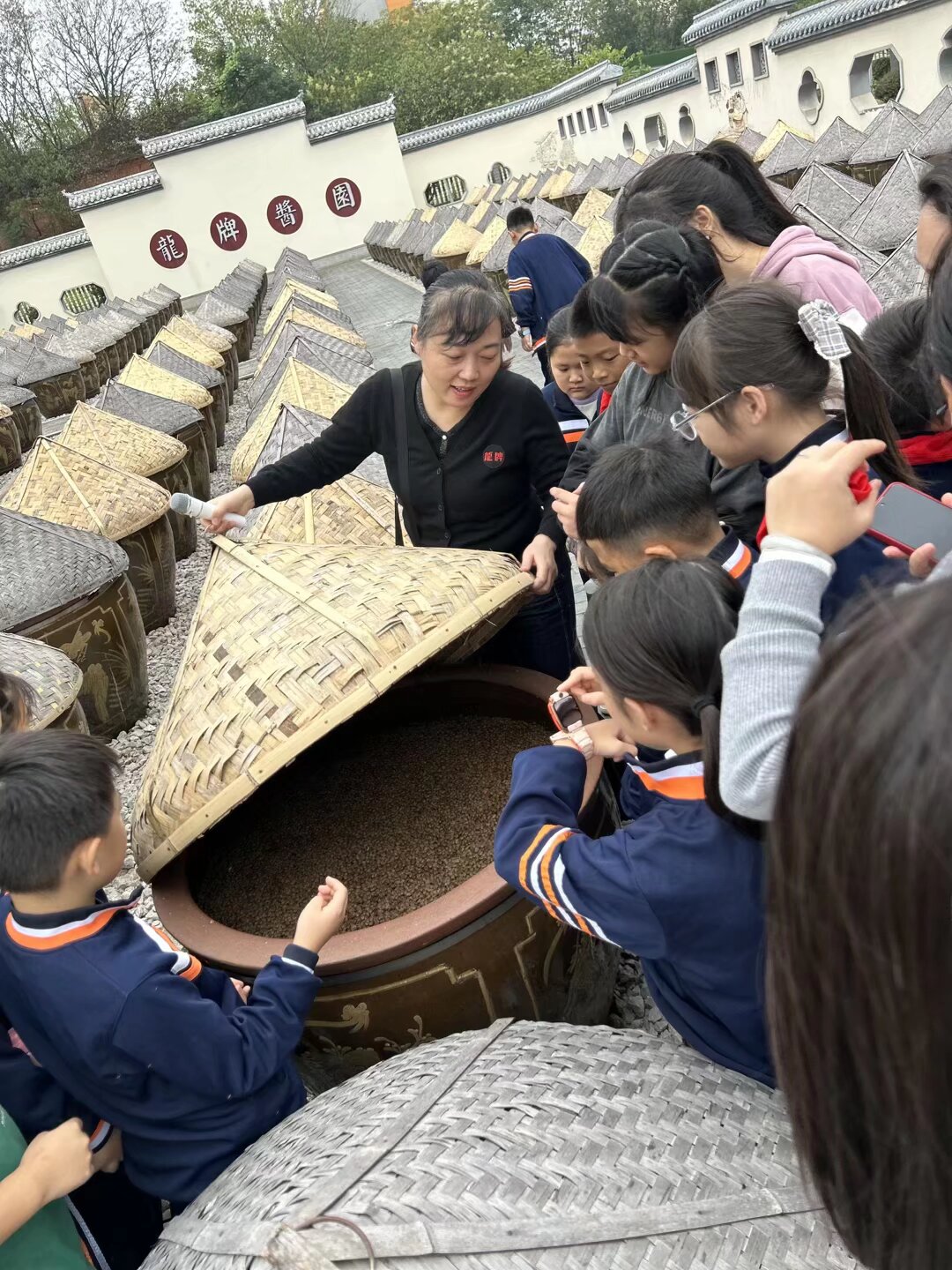 “哇!这么多大缸,里面盛放的是什么啊?好香哦!为什么要露天摆放……”大家迫不及待地来到酱缸边,孩子们脑洞大开地问个不停。