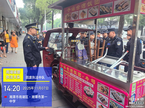 为进一步规范校园周边市容秩序,营造整洁、安全、有序的营商环境,针对一中校门口长期存在的流动摊贩占道经营现象,雨湖区城管大队前期已采取上下学高峰时段定点值守的方式,进行了多轮宣传与劝导。11月7日中午,雨湖区城管大队联合公安部门、街道执法室,开展了市容秩序集中整治行动,旨在巩固前期成果,重点对经反复教育仍拒不整改的“顽固”摊贩依法进行集中查处。