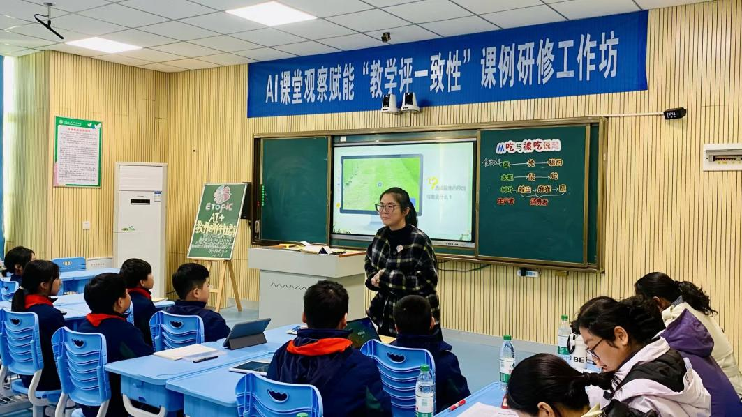 雨湖融媒11月20日讯(通讯员 武乐)科技赋能教育,智慧点亮课堂。11月18日,由湘潭市教育局指导、湖南省黄佑生名师工作室ETopic工作站与九华和平将军渡小学联合承办的第42期AI课堂观察赋能 "教学评一致性" 科学课例研修工作坊,在该校科教楼三楼录播室成功举办。来自全市小学科学教师、国培E0301学员及智慧教育讲师团成员及培养对象等50名教育工作者齐聚一堂,共同探索人工智能与课堂教学深度融合的创新路径。