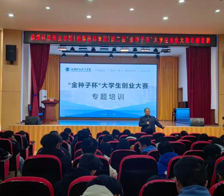 11月20日,先锋街道联合湘潭科技职业学院(湘潭技师学院)举办的大学生创业大赛专项培训讲座在学院报告厅正式启幕。中华人民共和国人力资源和社会保障部创业培训师、湖南省大学生创业导师、国家级、省级创新创业大赛评审专家朱建炜教授受邀主讲,学院200余名师生团队齐聚一堂,共同解锁创业赛事核心密码,点燃创新奋斗激情。