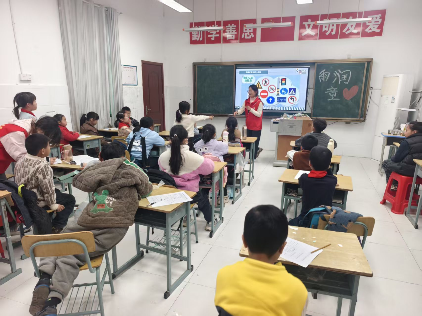 雨湖融媒12月4日讯(通讯员 杨沛锦 谢婷)12月4日下午,在第40个国际志愿者日来临之际,湘潭市雨湖区民政局、中共雨湖区委社会工作部、雨湖区教育局、共青团雨湖区委员会联合雨湖区志愿者协会,走进湘潭市雨湖区姜畲镇青亭学校,开展交通安全知识宣讲活动,为这所渠畔乡村学校的近30名师生带来了一堂实用的安全“必修课”,用志愿力量为渠边求学路筑牢安全屏障。