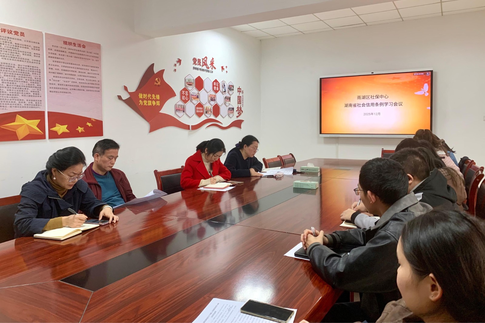 会议首先开展政策学习,组织全体干部职工深入学习《湖南省社会信用条例》,系统解读条例出台背景、核心要义及实践意义,引导干部职工树牢信用意识,将信用建设融入社保服务各环节;同步学习雨湖区打击治理电信网络诈骗违法犯罪相关文件,明确工作要求,筑牢风险防控防线。
