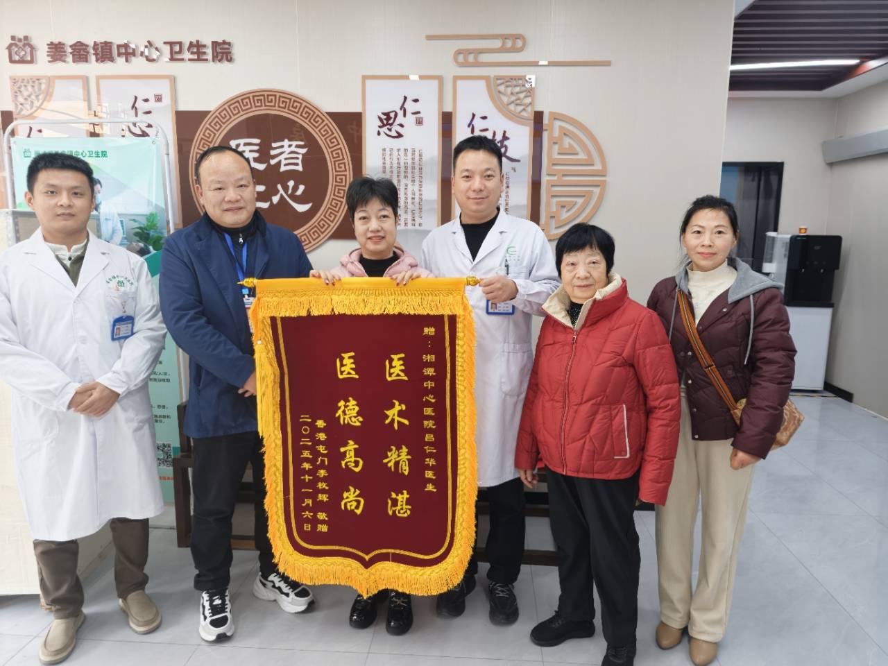 雨湖融媒12月8日讯(通讯员 许雄英 肖叶子)近日,一面印有“医术精湛,医德高尚”的锦旗,由香港患者李女士郑重送至雨湖区姜畲镇中心卫生院第一书记吕仁华医师的手中。曾因膝关节疼痛无法行走、千里求医的李女士,经过该院超声引导可视化精准治疗,已重新迈开步伐,回归健康生活。