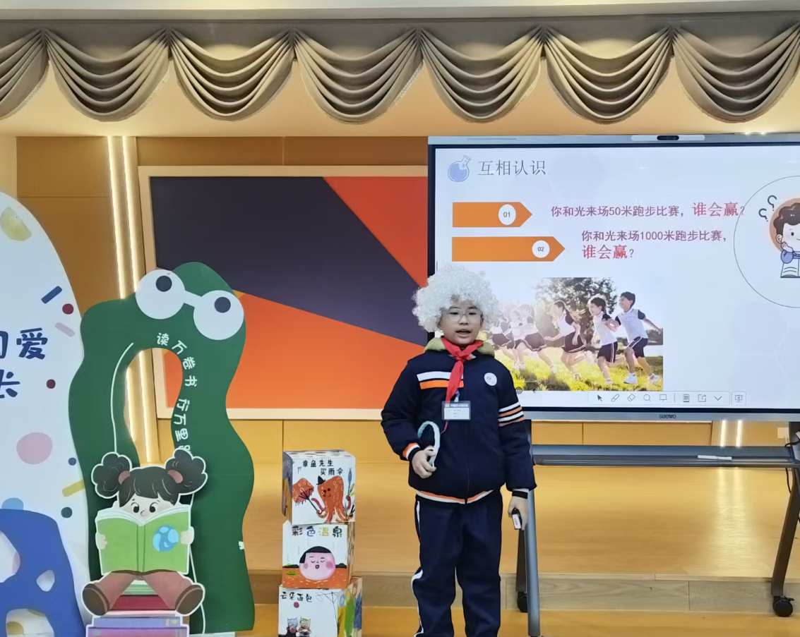作为活动的重要环节,科技知识分享会成为孩子们展示自我的舞台,有的演示“跳舞的盐”实验,细致讲解声波震动传播的原理;有的扮演古代旅行家徐霞客,生动讲述中国地理的神奇之处;有的化身“疯狂科学家”,用镜子和激光笔演绎光反射的魔法秀;还有由深海船长、活力果农、田野观察员等组成的“科普探险天团”,充分展示了学习科普知识的实践成果,赢得现场师生阵阵掌声。