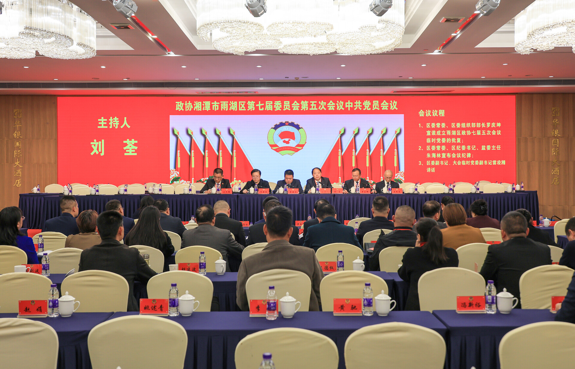 雨湖融媒12月16日讯(记者 朱文捷)12月16日下午,政协雨湖区第七届委员会第五次会议中共党员会议召开。区委副书记、统战部部长雷凌湘,区政协主席刘荃,区委常委、纪委书记、监委主任朱海林,区委常委、组织部部长罗庆坤,区政协副主席刘大鹏、王跃龙在主席台就座。刘荃主持会议。