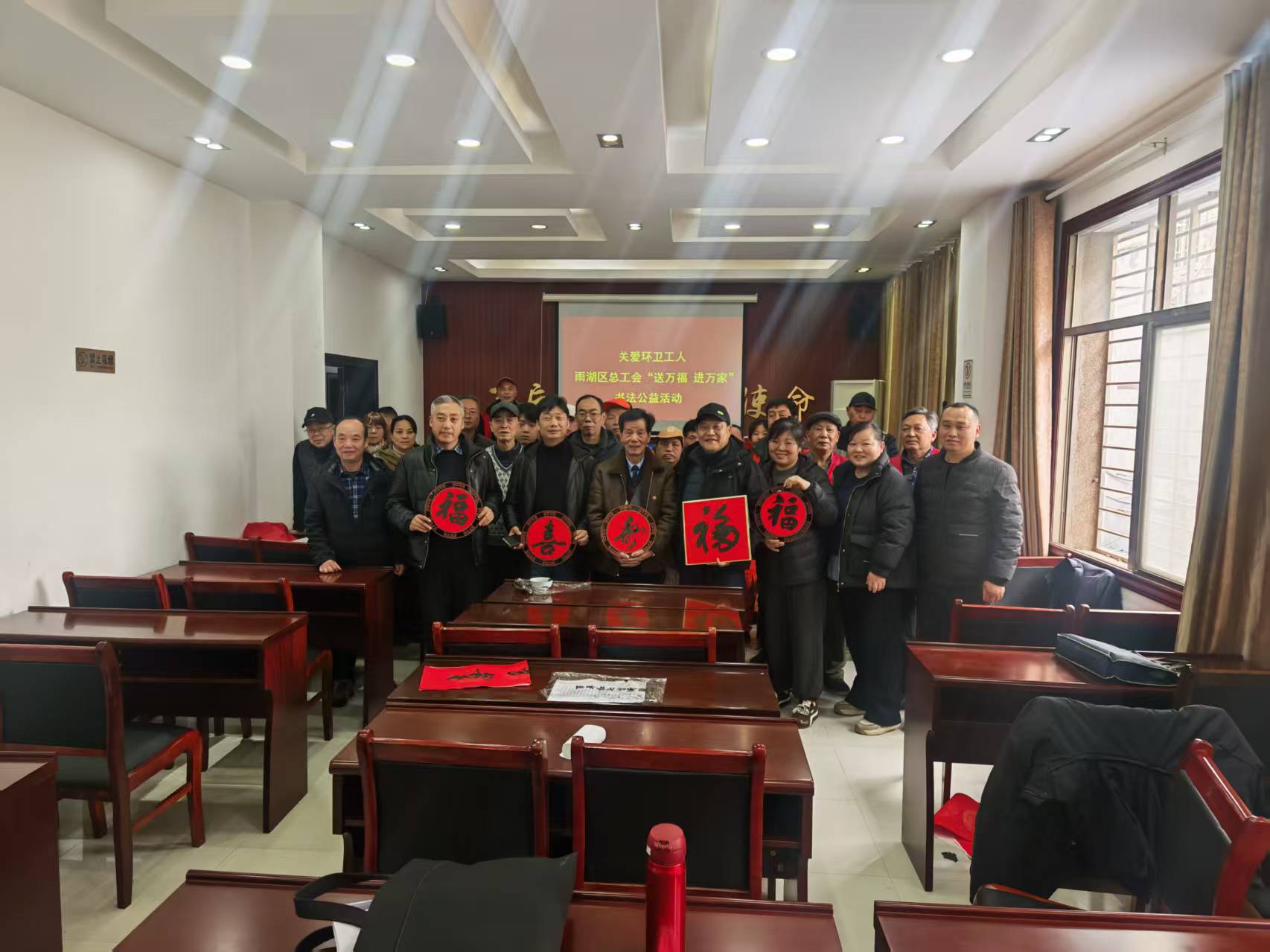 雨湖融媒2月3日讯(通讯员 刘葵 林静)2月3日,雨湖区总工会在区环卫服务中心组织开展“送万福 进万家”书法公益活动,邀请湘潭市老年书画家协会十余位书法家现场挥毫泼墨书写新春愿景。