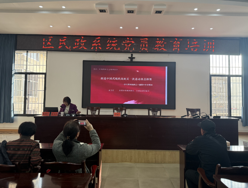 培训中,干建晖先以“学习贯彻党的二十届四中全会精神:接续奋斗谱写雨湖民政新篇章”为题,深入解读党的二十届四中全会精神,结合雨湖民政工作实际,阐述民政事业发展的新方向、新任务,让党员干部对民政事业的发展蓝图有了更清晰的认识。