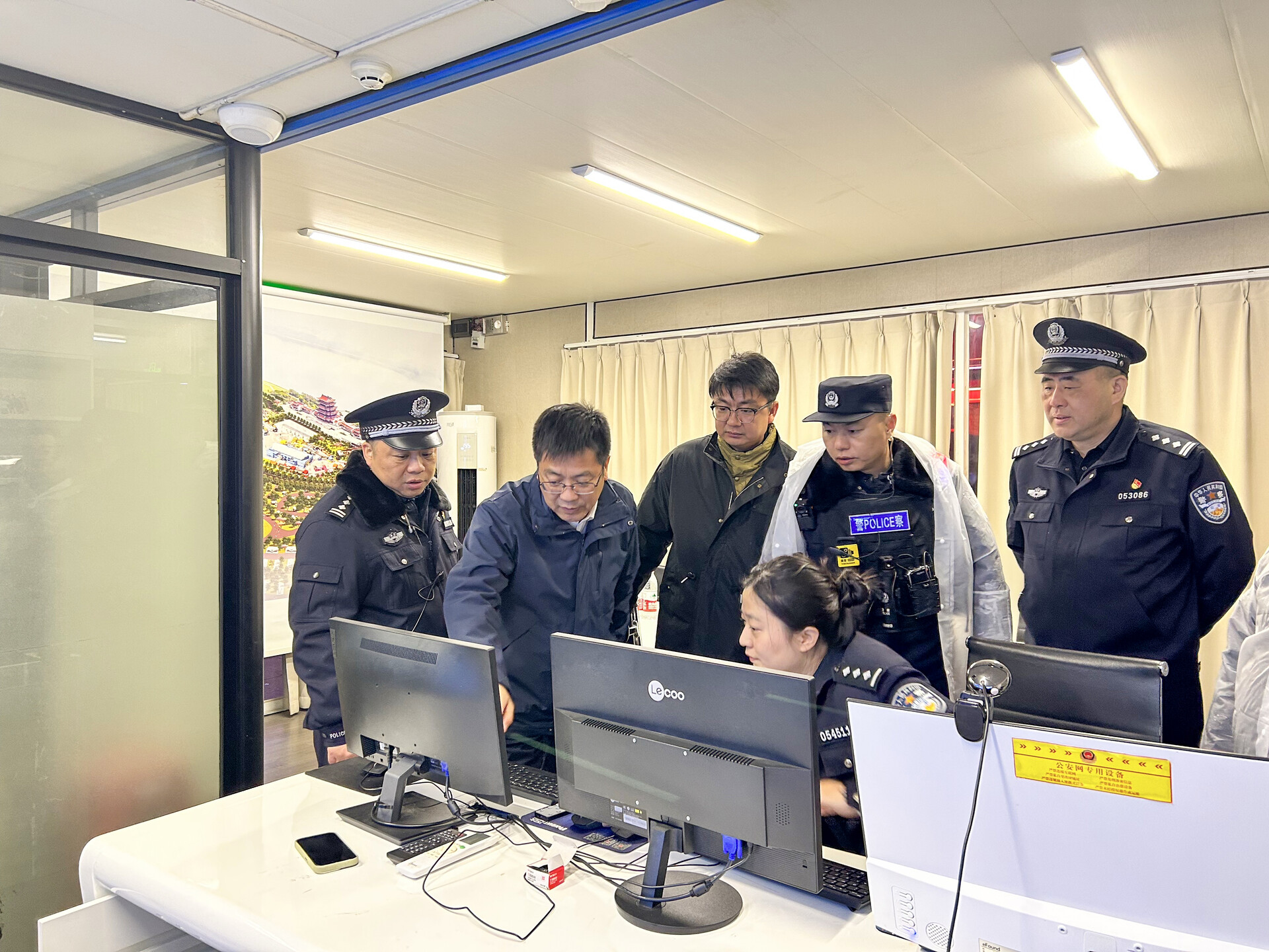 当晚,虽然天气寒冷,但景区依然人流如织,节日氛围浓厚。陈小平一行深入景区主要通道、人员密集区域,仔细查看现场游客流量、秩序维护、设施安全等情况。在景区警务工作站,陈小平详细了解了警力部署、应急值守、巡逻防控、应急处置预案等工作落实情况,并向一线值守人员致以衷心感谢和亲切慰问。