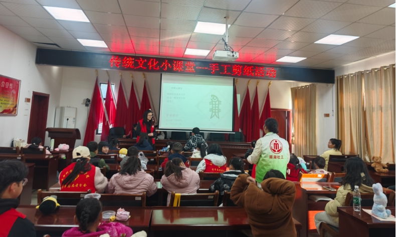 雨湖融媒1月5日讯(通讯员 黄建平 黄婷)近日,在雨湖区民政局的指导下,湖南省美心社会工作服务中心驻和平街道社工站在科大社区举办“指尖非遗·字里乾坤”传统文化小课堂,吸引了数名儿童积极参与。活动以剪纸创作和甲骨文字谜竞猜为依托,让孩子们沉浸式感受中华优秀传统文化的魅力,在温馨的周末时光中感受浓厚的文化底蕴。