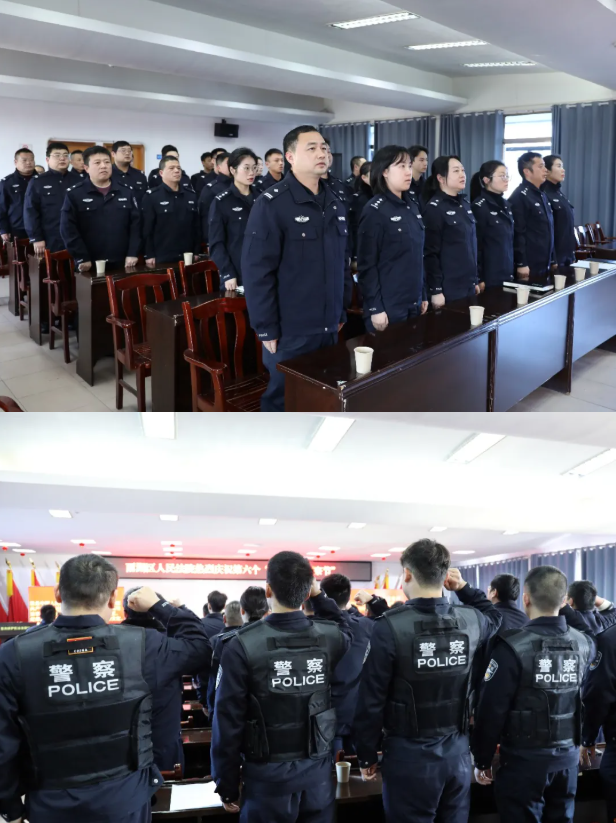 庆祝活动在庄严的氛围中拉开序幕,全体司法警察警容严谨、精神抖擞,共同观看记录司法警察日常工作与训练的纪实照片集锦。奏唱国歌后,在领誓人的带领下,全体司法警察面向警旗肃立,高举右拳,重温入警誓词。铿锵誓言回荡全场,既是对从警初心的回望,更是对职责使命的承诺。活动中,司法警察代表结合自身工作经历,依次分享其在警务保障、应急处置中的实战经验与心得体会,朴实的话语中满是坚守与担当。