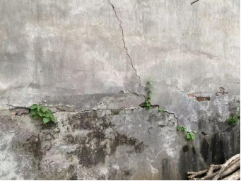 树木枝叶攀附挤压墙体。