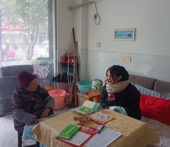 社区工作人员走访独居老人。