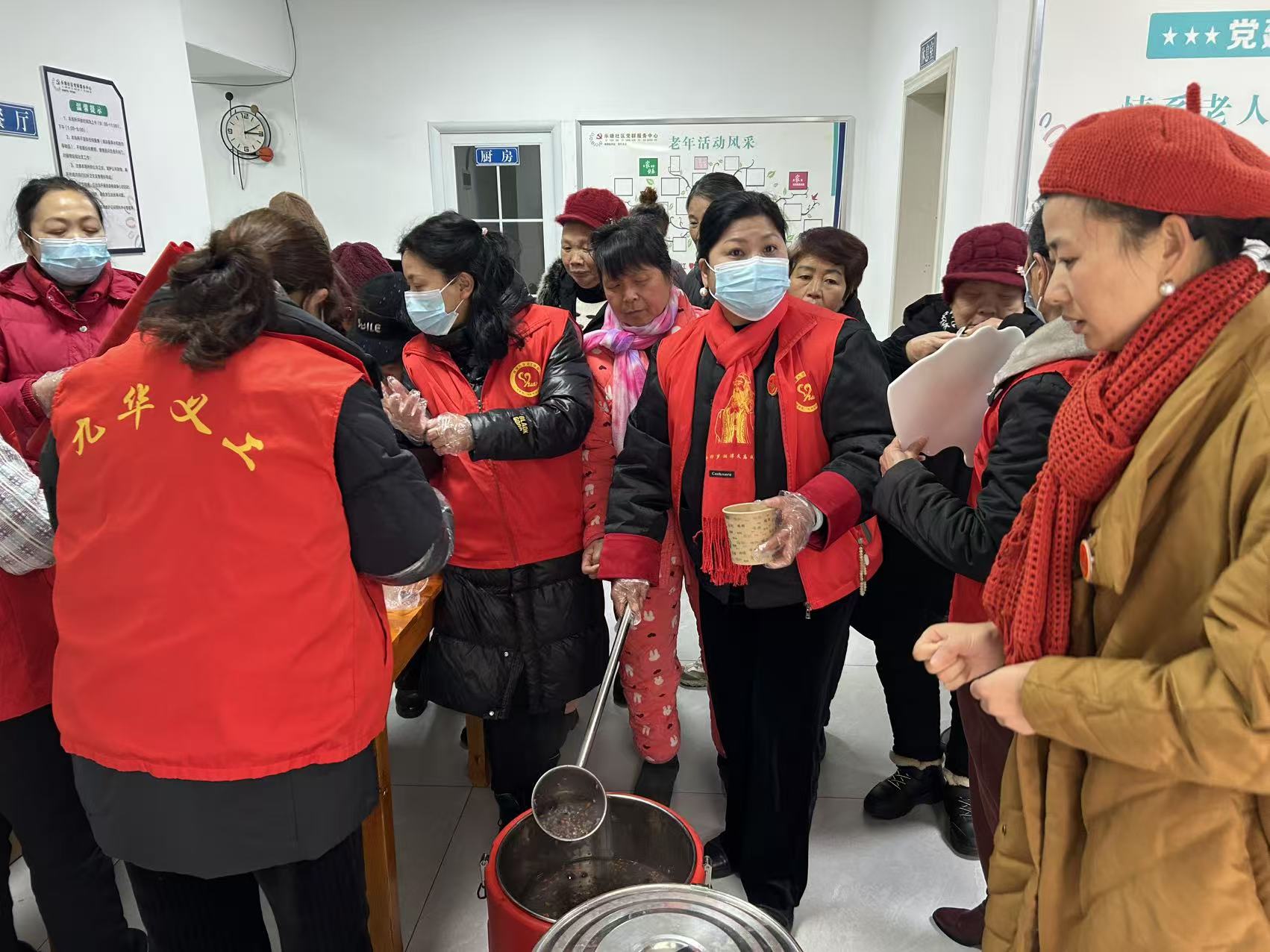 活动现场暖意融融,雨花公益家委会提前备齐食材,历经4小时精心熬煮,将红枣、糯米、核桃、红豆等多种食材融合,熬制成香甜软糯的腊八粥,出锅后香气四溢。志愿者身着统一服装,有序为居民和老人盛粥,这份暖胃的粥品承载着对老年群体的敬重。一位老人笑着称赞:“这粥又香又糯,心里也暖烘烘的!”此次活动共送出福粥300份,满载志愿者的爱心。