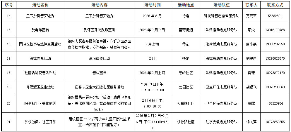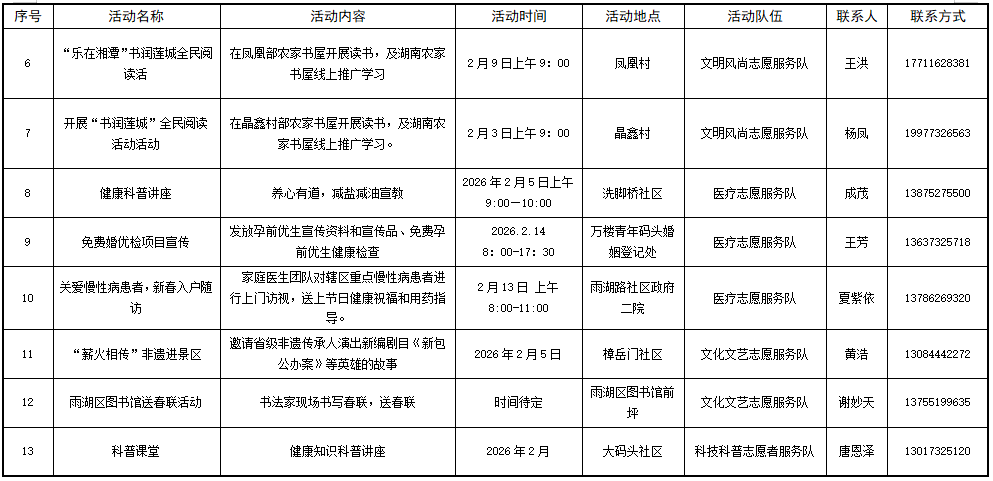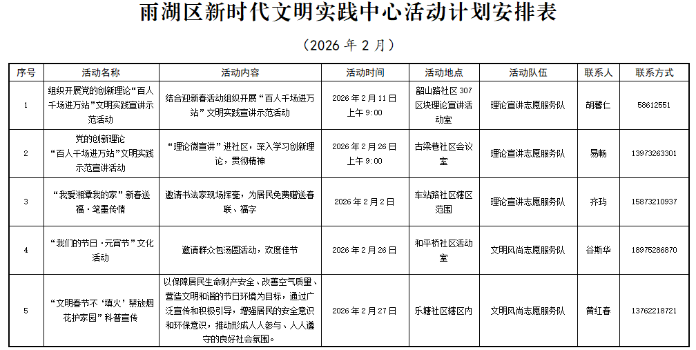 雨湖路街道新时代文明实践所2026年2月份活动安排.doc