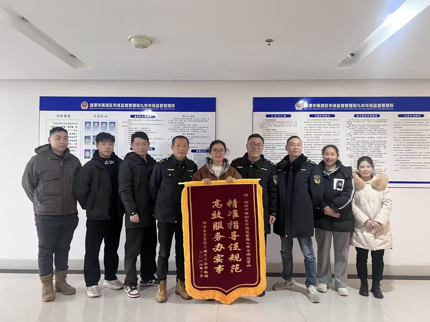 雨湖融媒1月29日讯(通讯员 张明仲)近日,湘潭经开区某餐饮企业将一面锦旗送到了雨湖区市场监督管理局九华监管所,对该所在其经营初期给予的耐心指导和有力支持表示诚挚感谢。