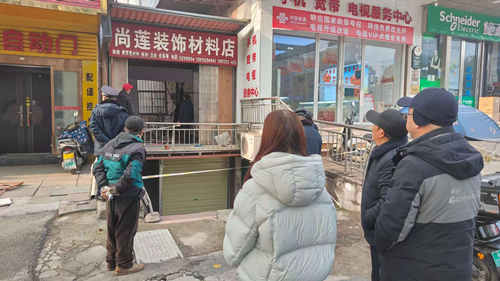 社区工作人员在巡查过程中收到居民反映,辖区日杂大厦与心澄公寓两栋房屋的通道间又新建了一处约20平方米的违章建筑,这不仅违规侵占公共空间,还影响通道的消防安全。为此,宝庆路社区高度重视,立即组织下户了解情况。在多方打听后,了解到此处有两处违建,均是附近门店业主搭建,社区要求立即拆除,但业主表示不同意。经社区工作人员多次上门沟通,耐心讲解《中华人民共和国城乡规划法》等相关法律法规,阐明违建存在的安全隐患与法律风险,动之以情、晓之以理,最终赢得当事人的理解与主动配合。