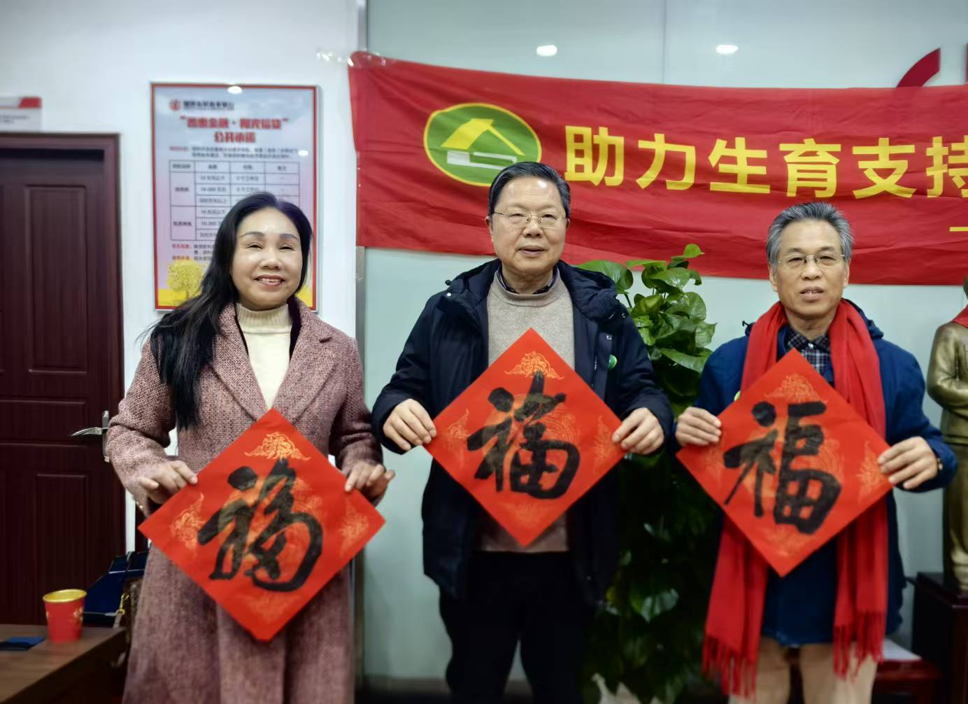 活动中,湘潭市知名书法家李志明、黎石城、陈威挥毫泼墨,笔走龙蛇,一幅幅笔力遒劲寓意吉祥的春联,一张张饱满喜庆的“福”字跃然纸上。市委原副秘书长、市文联原主席赵志超亲临现场,与书法创作者、社区群众亲切交流互动;雨湖区计生协专职副会长赵拥军全程协调参与,向群众普及婚育新政策;九华街道、金井社区相关负责人共同向居民们致以节日的问候和祝福。活动现场,新春祈愿与美好期许凝于笔端,墨香与年味交织,尽显中华优秀传统文化的独特魅力。