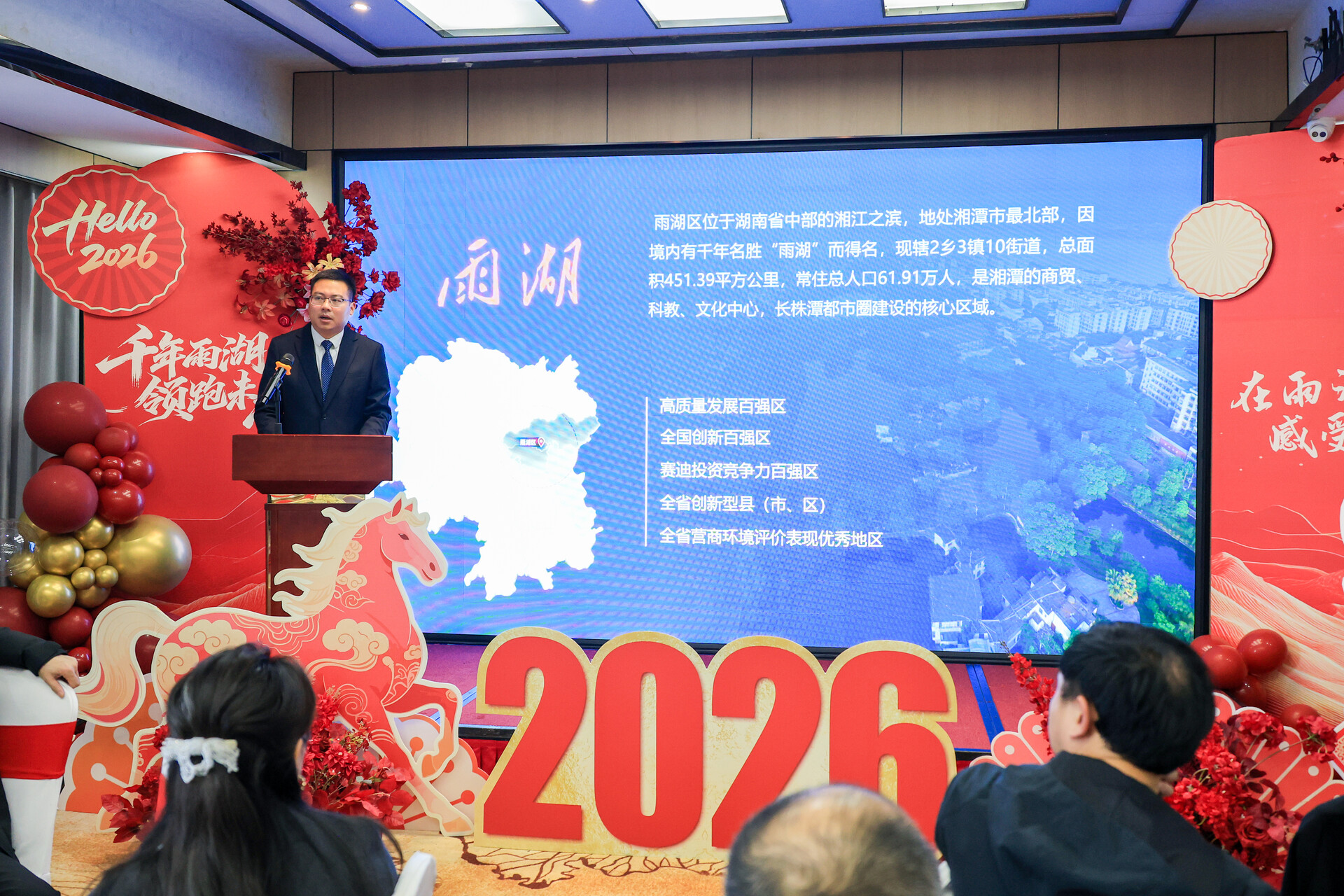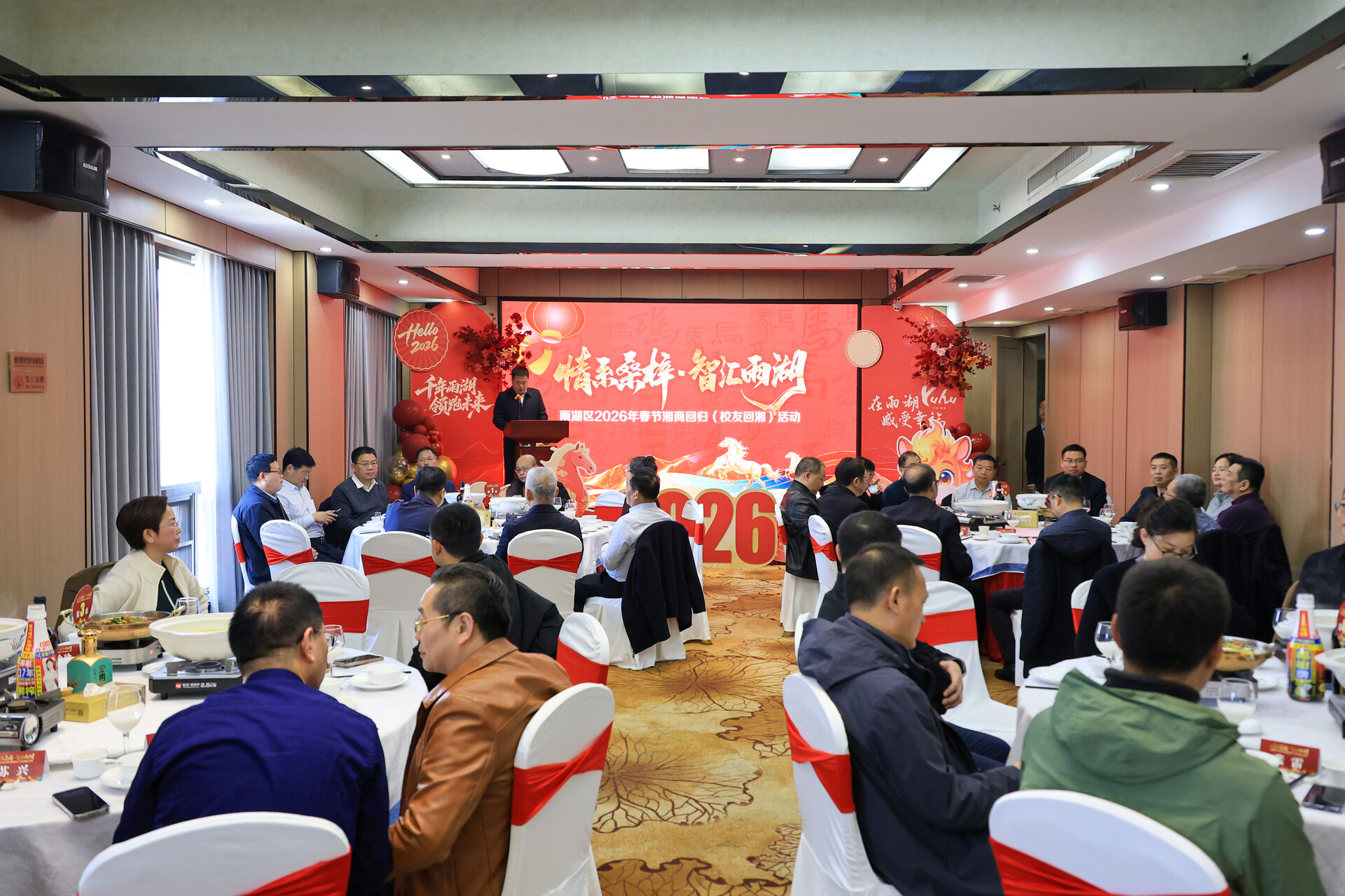 区委书记陈小平在致辞中向各位湘商、校友和企业家代表致以新春的祝福,并对大家长期以来关心支持家乡建设表示感谢。他说,雨湖这片热土浸润湘江灵秀、传承莲城文脉,当前正处在区位优势凸显、产业基础坚实、营商环境优化的黄金发展期,热切期盼广大湘商校友一如既往情系桑梓,做雨湖发展的“合伙人”、形象的“代言人”、兴旺的“智囊团”,把更多优质项目、高端人才和创新资源带回家乡。区委、区政府将持续优化营商环境,当好服务企业的“店小二”,让大家在雨湖投资放心、创业安心、发展顺心,共同开创雨湖更加灿烂辉煌的明天。