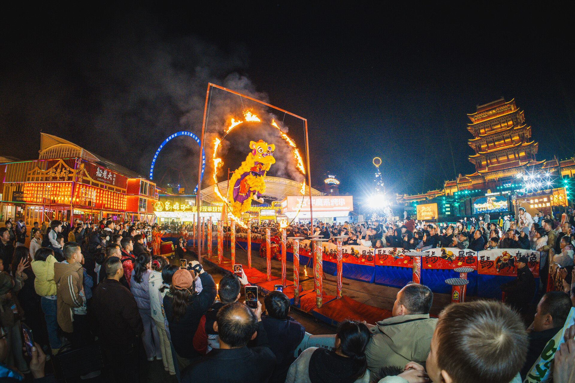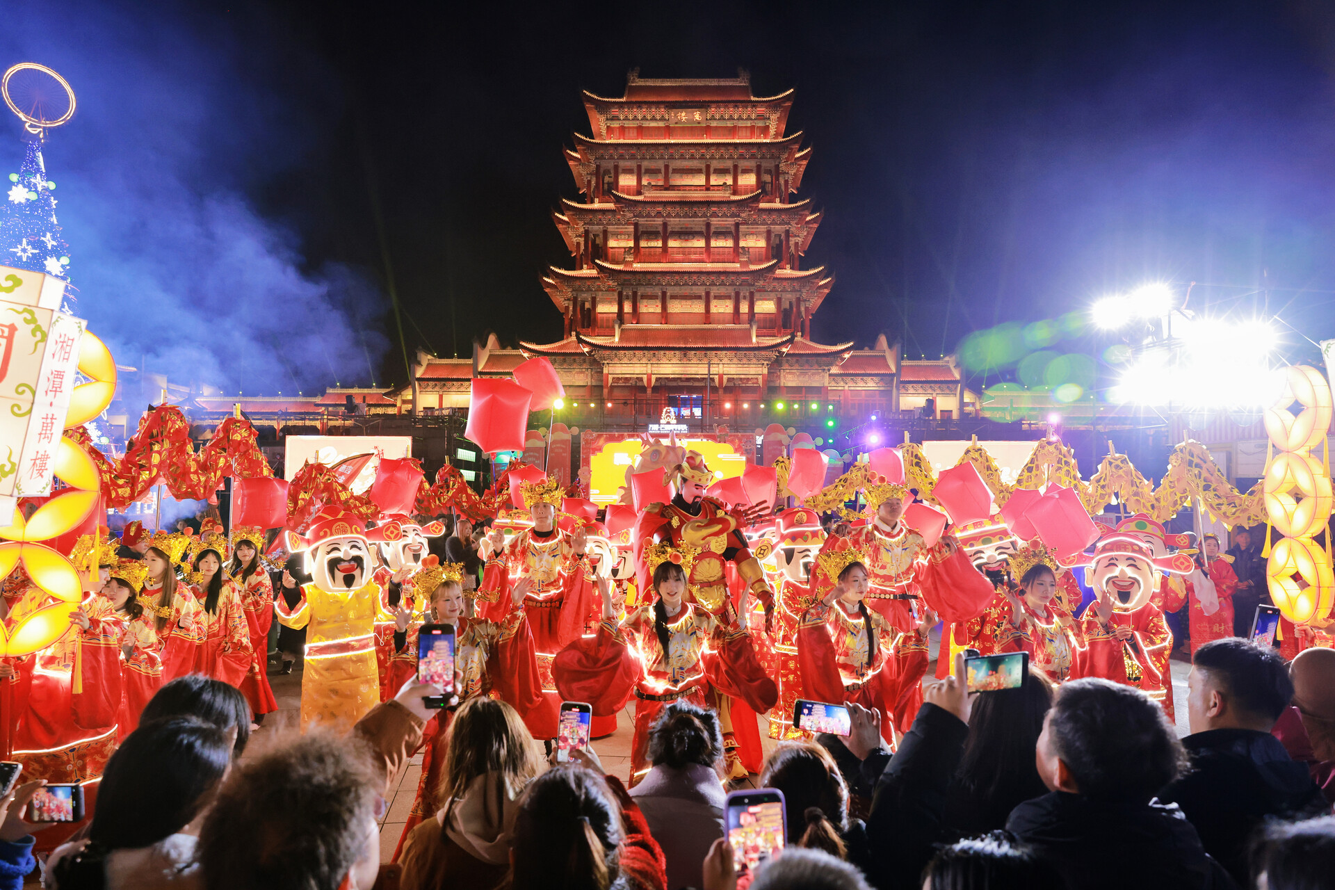 万楼·芒果青年码头则以“码头庙会,财神驾到”为主题,从早9点至晚11点全天候开放,打造贯穿整个正月的大型新春乐园。“元宇宙”区域的“文运签”、汉服走秀,海洋馆的“水下舞狮”奇观,以及摩天轮广场的万盏华灯与巨型鳌鱼灯阵,共同构成了一个集文化体验、亲子互动与潮流狂欢于一体的复合型新春场景。