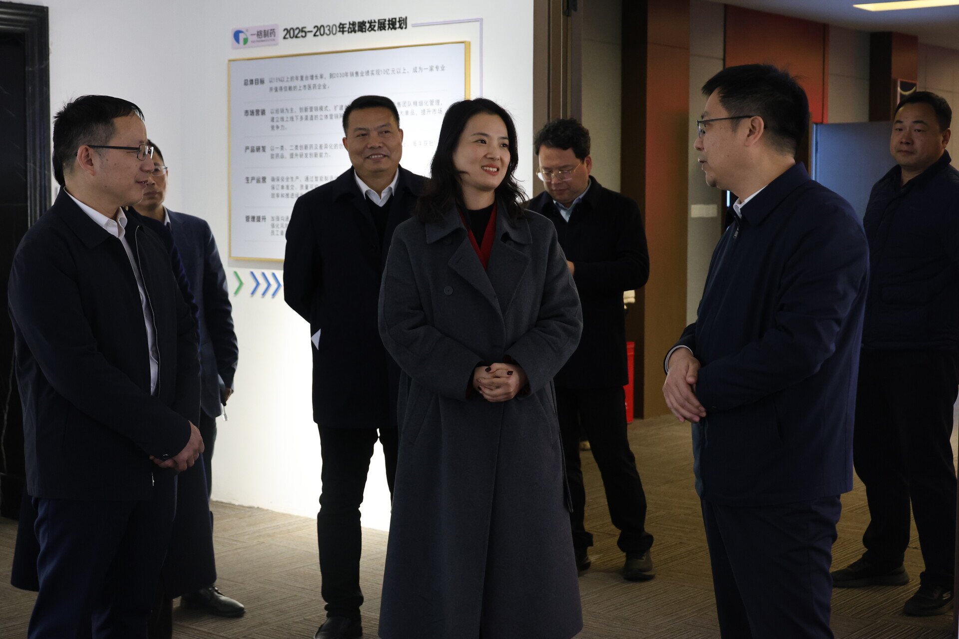 与湖南一格制药有限公司负责人交谈。