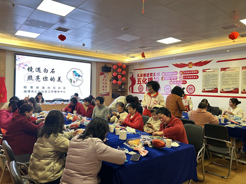 雨湖融媒3月5日讯(通讯员 王倩妤) 巾帼展风采,巧手绘华章。近日,在“三八”国际妇女节即将到来之际,昭潭街道白石社区妇联联合市仁与社会服务中心、社区慈善基金,精心组织开展“镜遇白石,照亮你的美”织锦镜面团扇手作活动,30余名女性代表欢聚一堂,共赴一场国风与爱心交织的美丽之约。