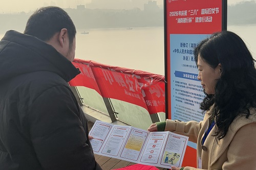 雨湖融媒3月9日讯(通讯员 徐晓娴) 为进一步筑牢女性权益保障防线,彰显新时代“她力量”。3月6日,市、区妇联联合窑湾街道妇联在十八总沿江步道开展“法护她力量 平安进万家”主题法治宣传活动,以法治温情献礼巾帼佳节。