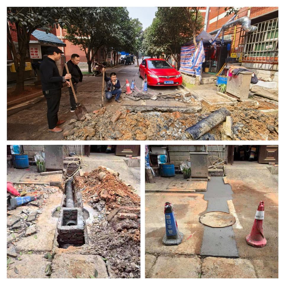 针对居民关心的施工影响、工期进度等问题,社区充分听取意见,制定了“分段施工、错峰作业、快速清运”的详细实施方案。既要彻底疏通管道,又要最大限度减少对居民出行和生活的影响,这一方案得到了在场居民的一致认可。方案敲定后,社区立即组织专业施工队伍进场,伴随着高压清洗车和吸污车的轰鸣声,施工人员对堵塞管道进行了强力冲刷和全面清淤,并对塌陷管道进行了紧急更换。随后,社区还督促施工方对开挖路面进行了回填和冲洗,确保环境整洁如新。