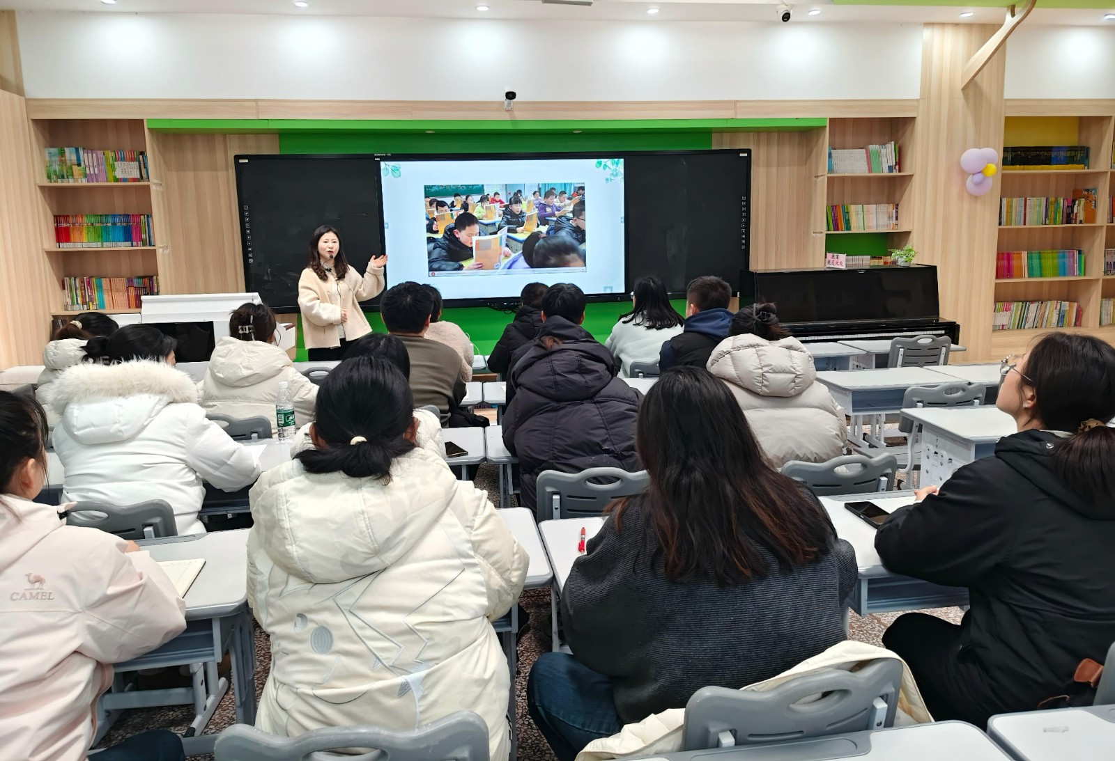 针对青年教师在班级管理中可能遇到的各类难题,王小菁精准发力,分享了20个实用可行的正向育人金点子,以温和有趣、易于操作的方式,引导青年教师学会用科学的方法引导学生改正行为、养成良好习惯。同时,她还展示了自己带班以来开展的交通安全、传统文化、国防教育、成长礼、爱心义卖等特色班级活动,生动诠释了“有温度、有创意、有内涵”的育人实践,为青年教师提供了可复制、可借鉴的班级管理范本。