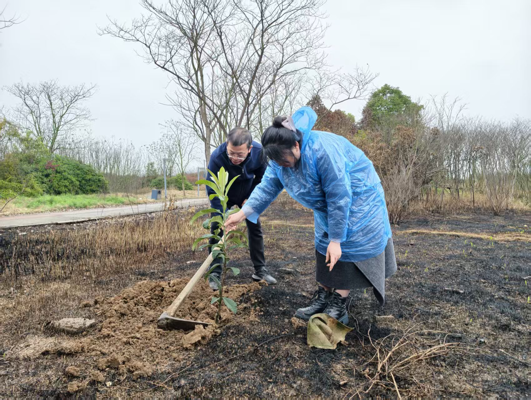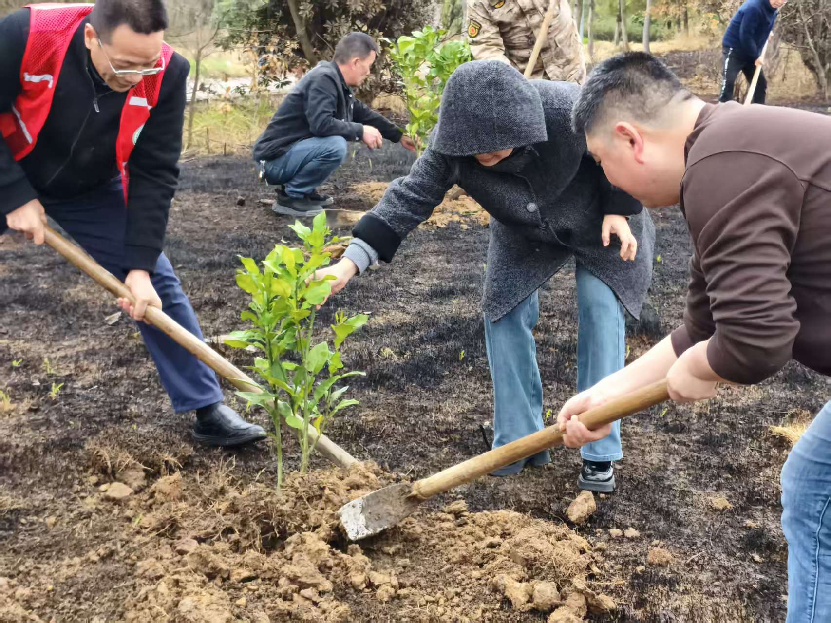 座谈结束后,委员们深入富强社区开展植树绿化活动,以实际行动践行生态环保理念,助力辖区人居环境提升。活动现场,委员们分工协作、干劲十足,挥锹铲土、扶苗培土、踩实浇水,每一个环节都一丝不苟,一棵棵新苗在社区落地扎根,不仅为辖区增添了盎然绿意,更以实际行动带动辖区群众增强生态环保意识,践行“双提升”行动要求,助力打造“清洁美、有序美、布局美、风尚美” 的社区人居环境,让绿色成为幸福雨湖的鲜明底色。