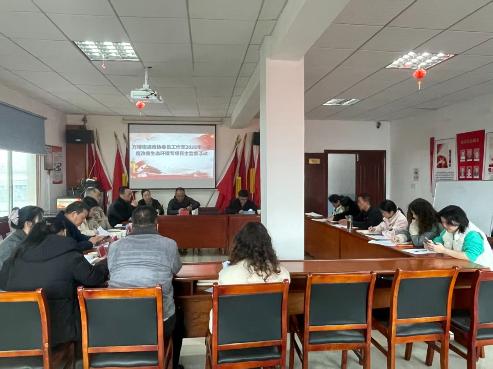 活动伊始,委员们齐聚富强社区召开现场会议,集中传达学习全国两会精神。大家紧扣全国两会关于生态环境保护、基层治理的相关部署要求,结合雨湖区“双提升”行动工作目标和万楼街道发展实际,开展交流学习,进一步统一思想、凝聚共识,为后续更好履行政协民主监督、参政议政职责,推动辖区生态环境改善和文明建设筑牢思想基础。
