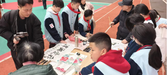 笔墨绘文明,丹青寄初心。活动同步设置了书画互动专区,街道书画爱好者与学生们围坐在案前,挥毫泼墨。“我爱湘潭”“文明伴我行”等书法作品刚劲有力,牡丹、山水等国画作品气韵生动,将文明理念凝于笔端、绘于纸上。书画爱好者们手把手指导学生运笔、调色,在笔墨流转中传递传统文化与文明素养,现场创作的书画作品还免费赠予居民与学生,让大家把文明美好带回家。